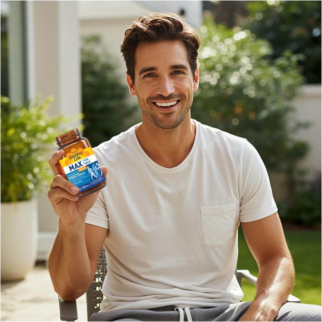 Country Life Max for Men Multivitamin: Iron-Free, Gluten Free, Saw Palmetto, Lycopene, Daily Support for Energy, Heart & Men's Health,120 Vegetarian Tablets