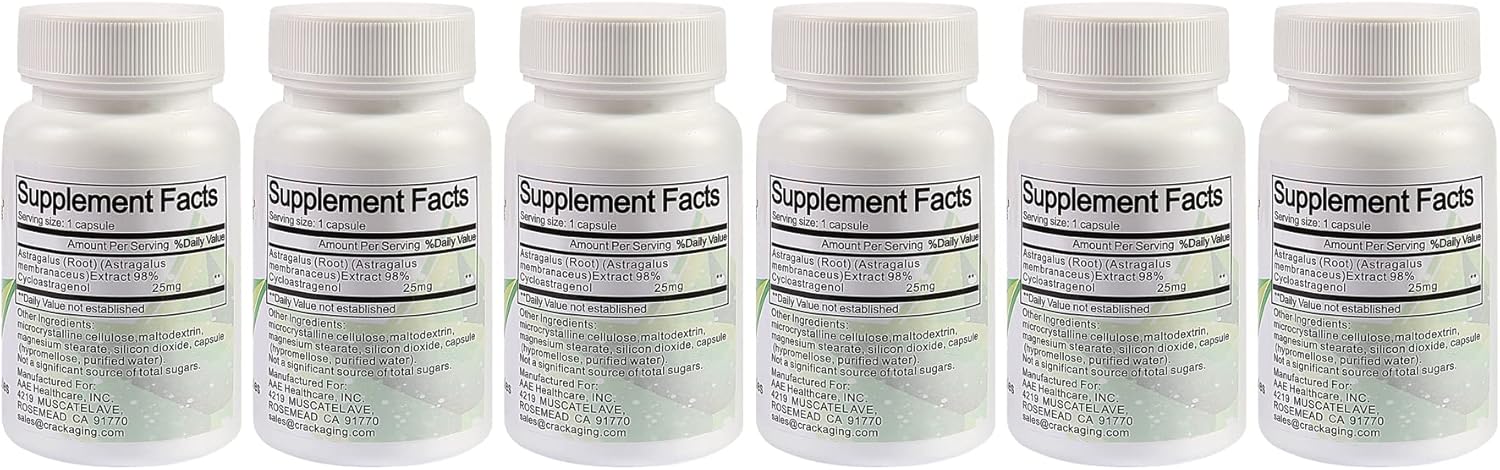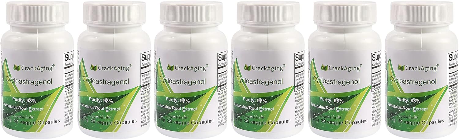 Crackaging Super-Absorption Cycloastragenol 98% 25mg/Cap, 180 Caps in 6 Bottles Anti-Aging reactivate & DNA Cell Telomerase Supplements Strength Faction Longevity Classic