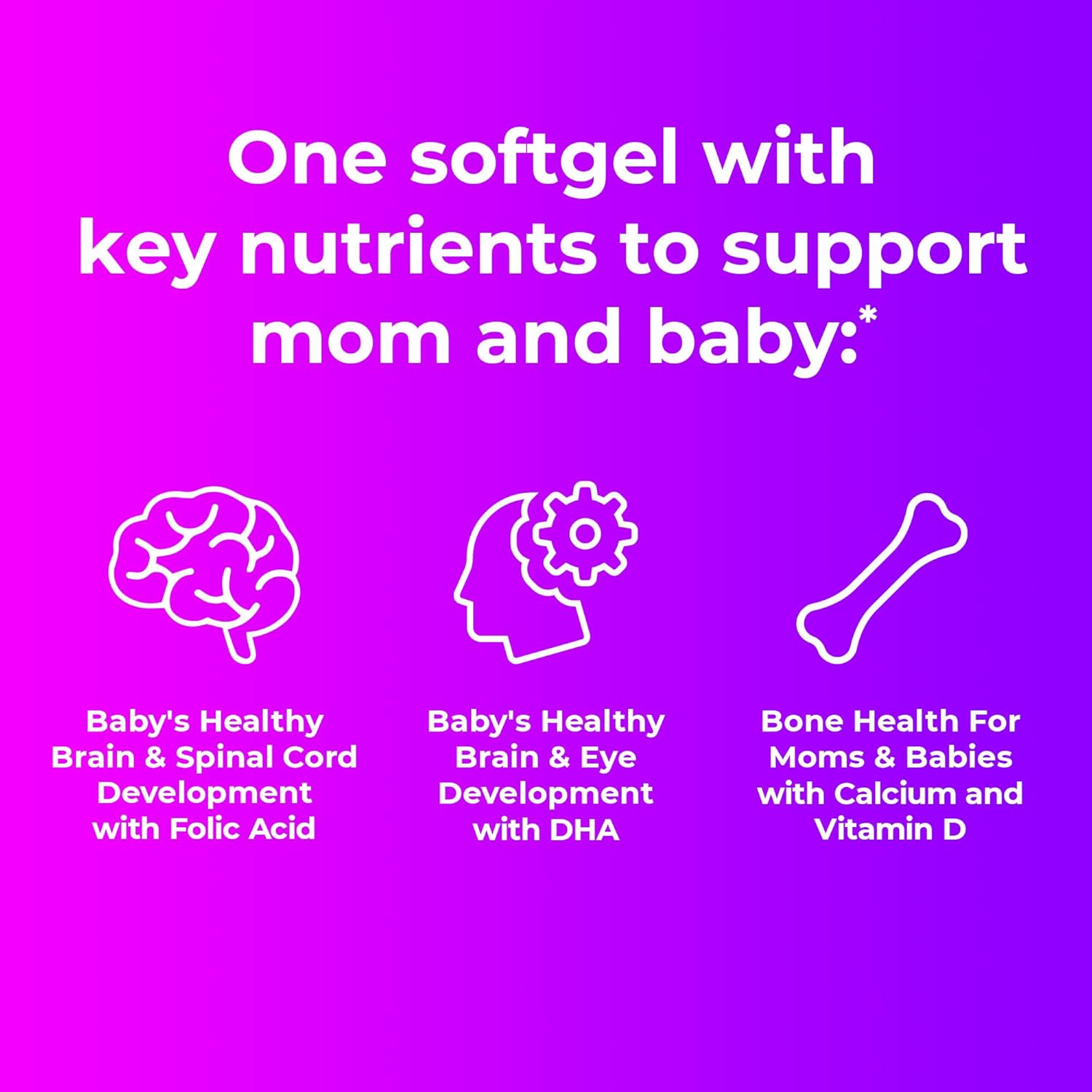 - Contains key nutrients Folic Acid, Omega-3 DHA, Calcium, Vitamin D, and Iron