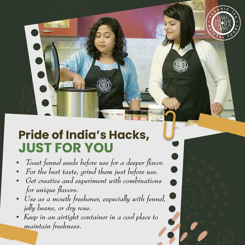 Pride of India – Fennel Seed Whole – Gourmet Spice – Fresh & Aromatic – Mouth Freshener – GMO/Gluten Free – Flavoring for bakes, meat & more – Easy to Use – 8 oz. Medium Dual Sifter Jar