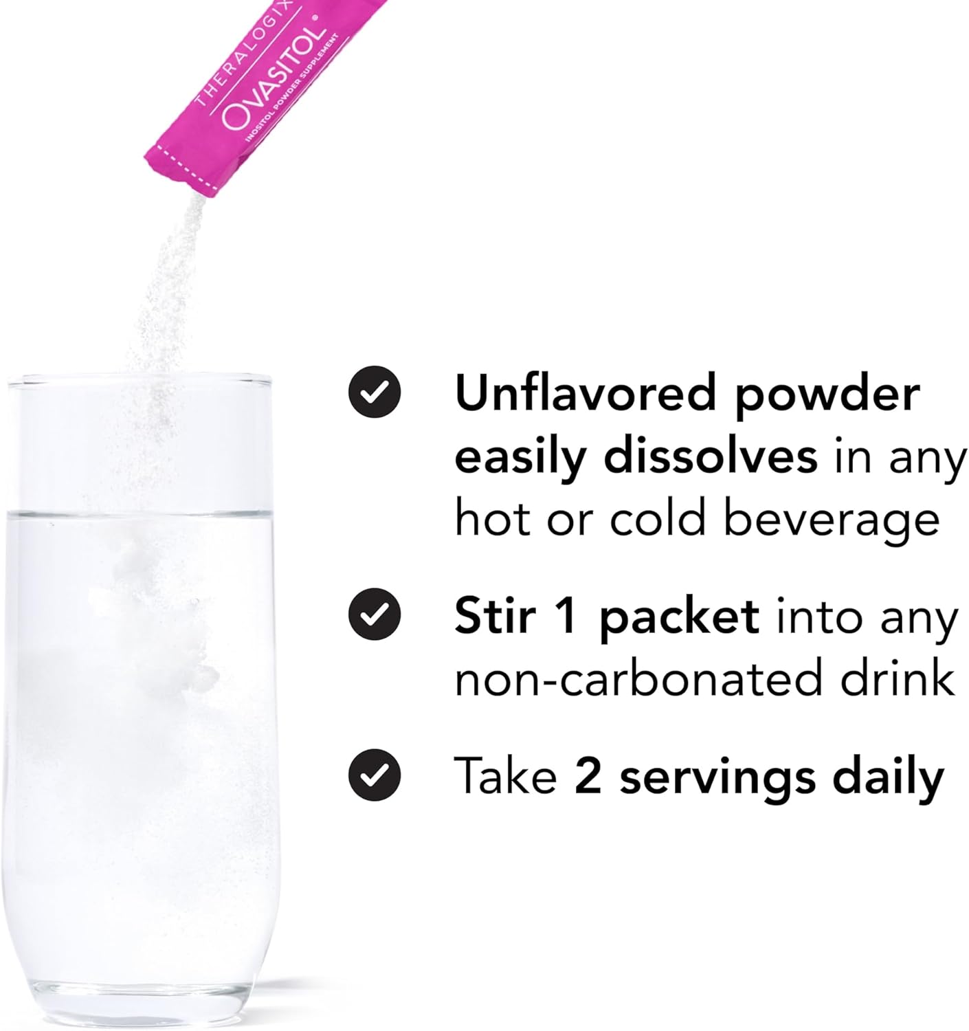 Theralogix Ovasitol Inositol Powder Packets - 90-Day Supply - Myo-Inositol & D-Chiro for Hormone Balance & Ovarian Function Support* - NSF Certified - 180 Packets