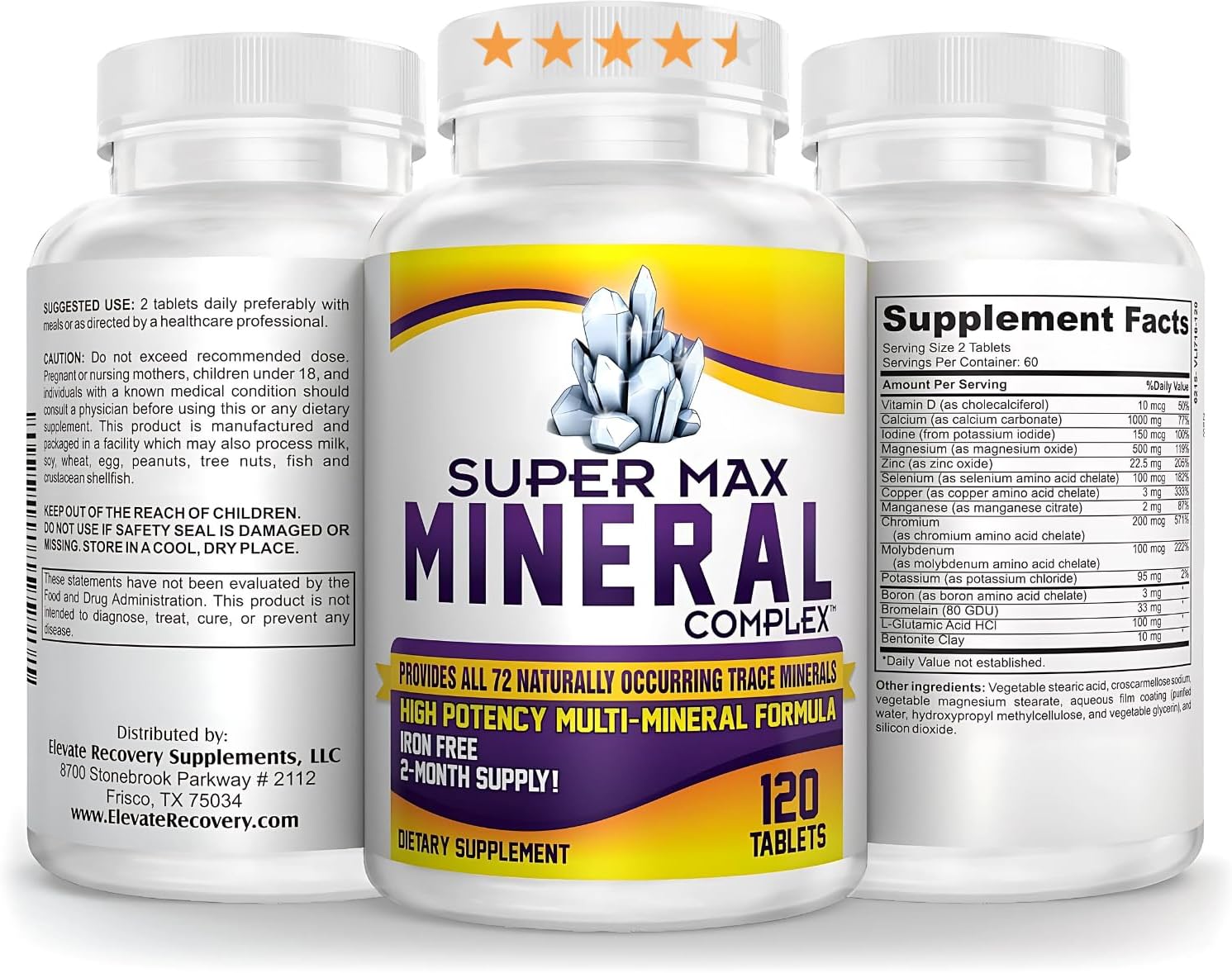 - SUPER-MAX: 2-Month Multimineral Supplement (Iron Free) Natural Multiminerals | High-Potency Multi Mineral Supplements (15-in-1) Blended Minerals Formula | Mineral Complex | 60-Day Bulk Supply | 120 Tablets
