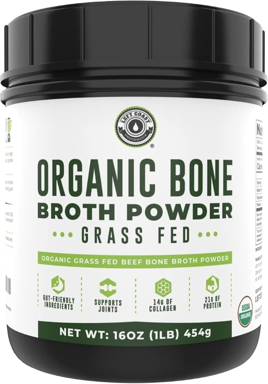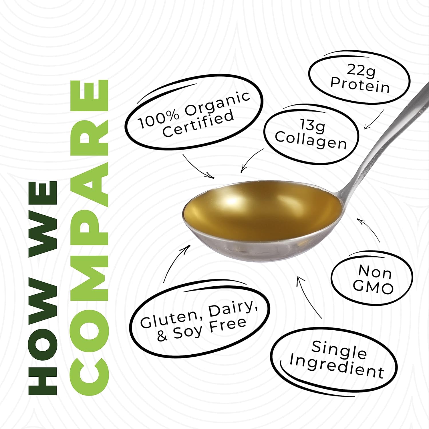 16oz Organic Bone Broth Protein Powder from Grass Fed Beef - USDA Certified Organic, Single Ingredient, Rich in Collagen, Glucosamine, No Additives, Perfect for Carnivore, Paleo, and Keto Diets