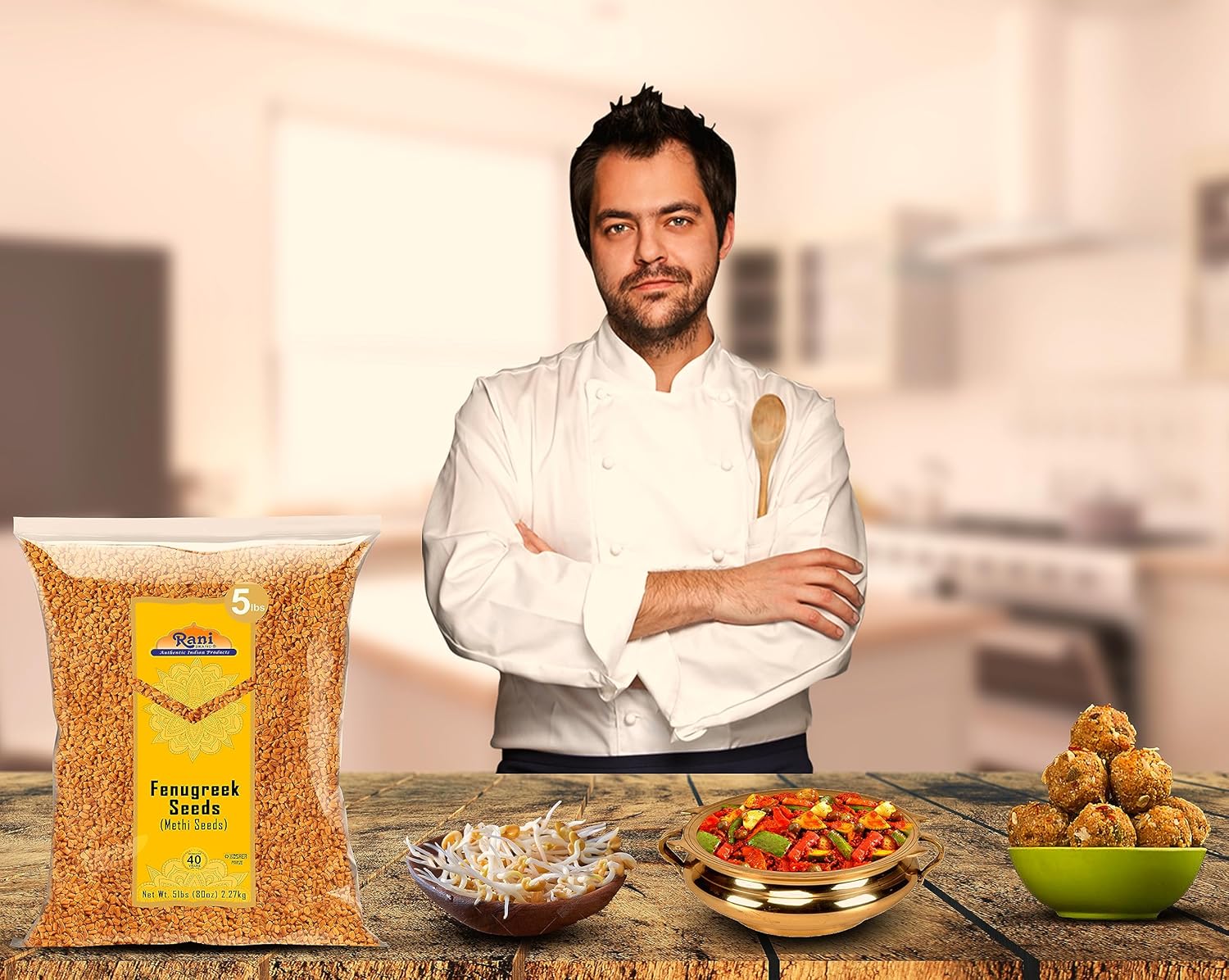 Rani Fenugreek (Methi) Seeds Whole 80oz (5lbs) 2.27kg Bulk Trigonella foenum graecum ~ All Natural | Vegan | Gluten Friendly | Non-GMO | Kosher | Indian Origin, used in cooking & Ayurvedic spice