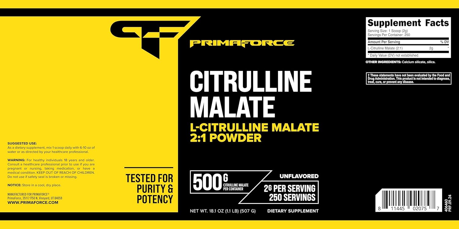 PrimaForce L-Citrulline Malate Powder, Unflavored, 500 Grams - Vegan, Non-GMO