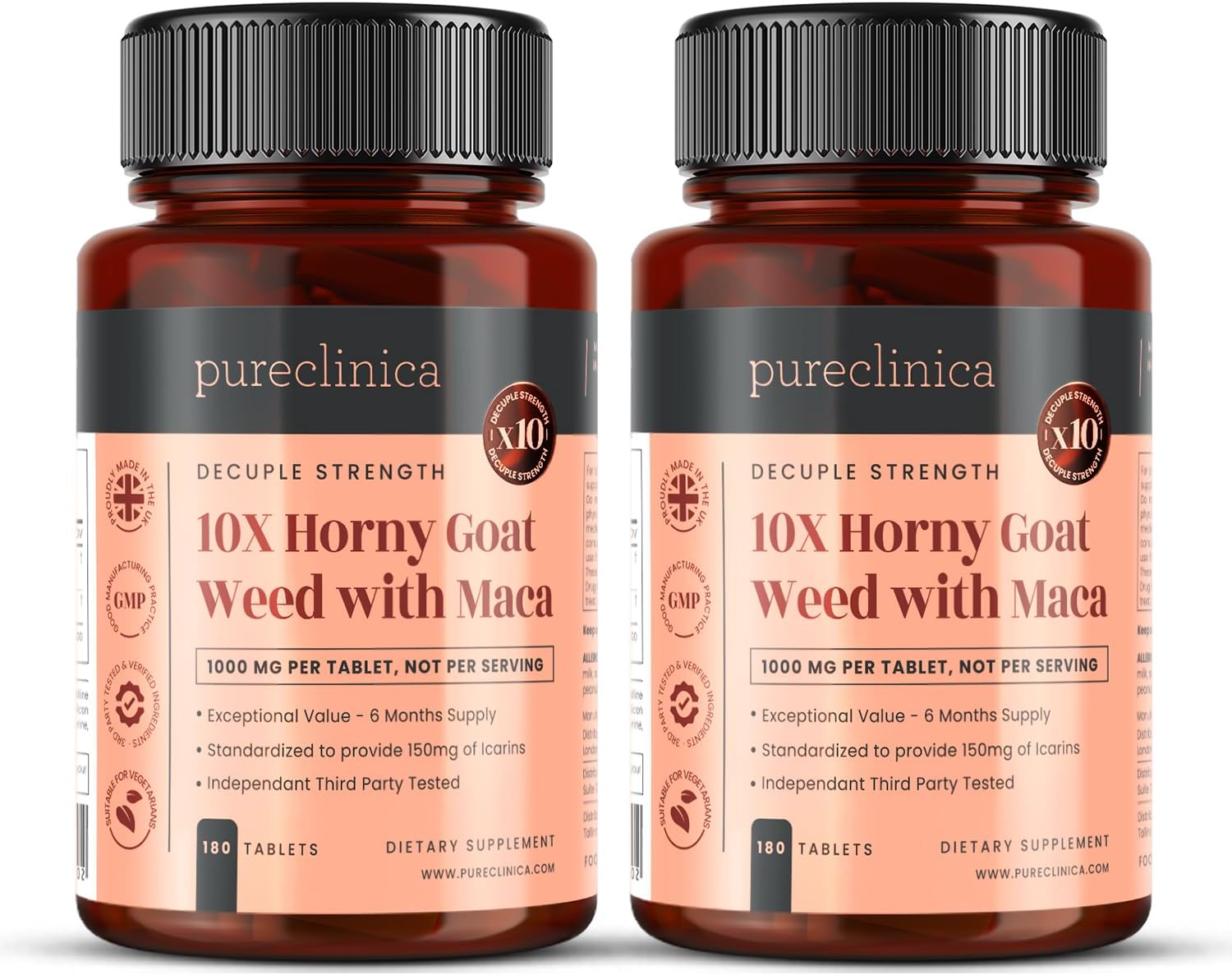 10X Horny Goat Weed Extract (3750mg) Maca Extract (2500mg) x 360 Tablets (2 Bottles of 180) - 1 Years Supply