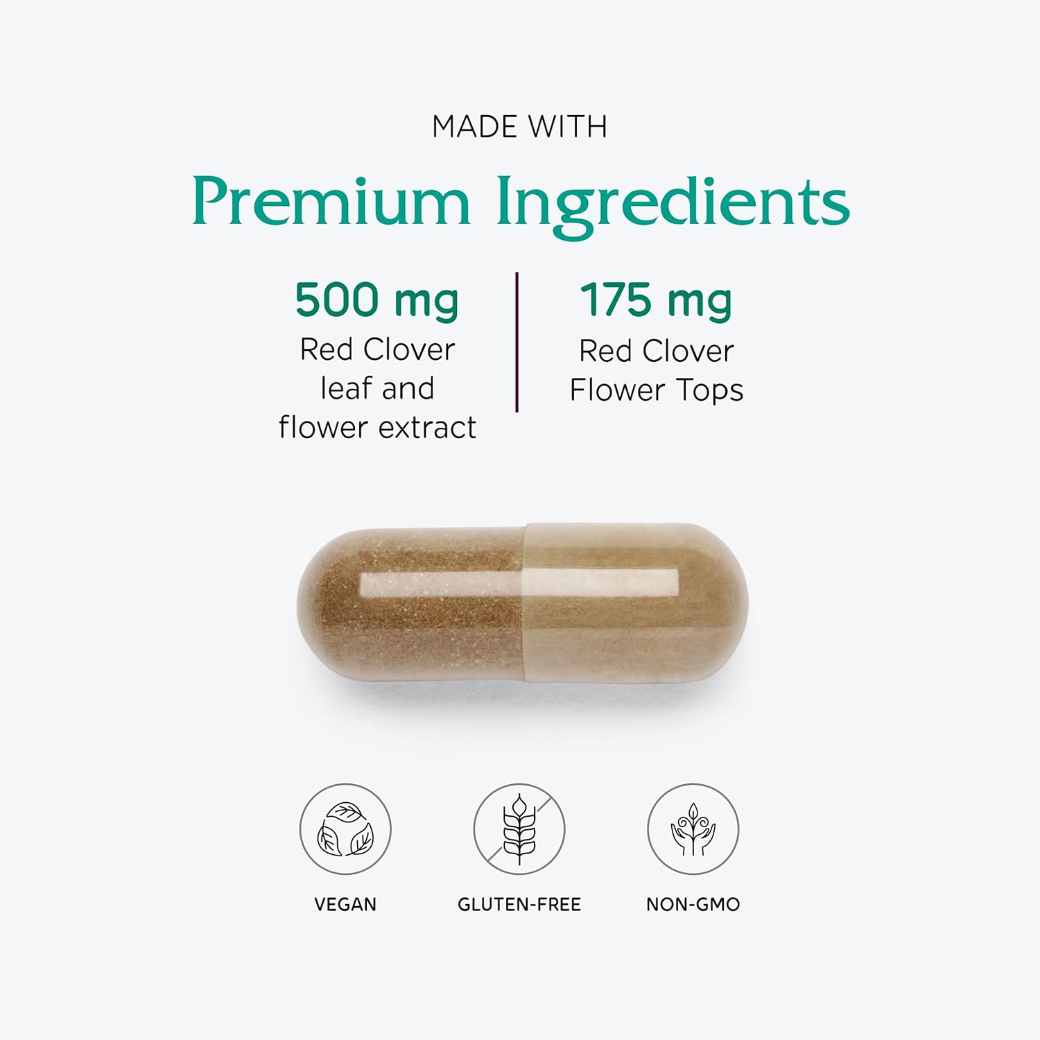 Vitanica Red Clover Blossom and Leaf Extract 500mg with 8% Isoflavones, Plus 175mg Blossoms, Menopause Relief Support for Women, 2 Month Supply, Non-GMO, Gluten Free, Vegan Supplement, 60 Capsules