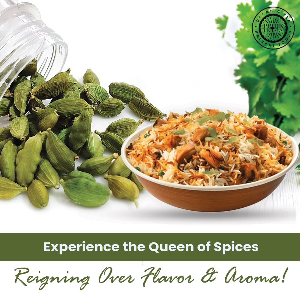 Pride of India | Green Cardamom Whole 1.5 oz (43 gm) Small Dual Sifter Bottle | Gourmet & Aromatic Spice | Flavoring agent for bakes/teas/drinks | Full Bodied Green Pods