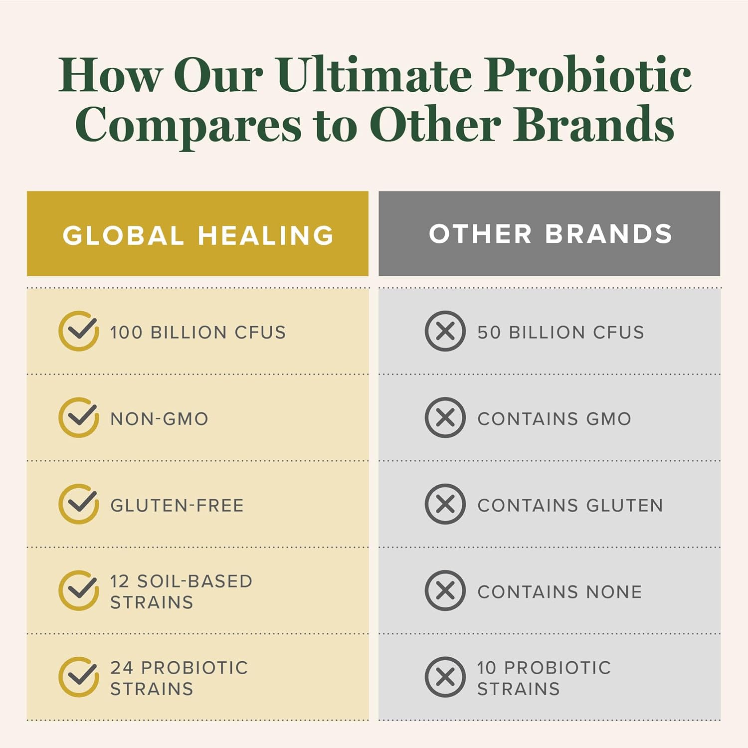 Global Healing Center - Ultimate Probiotic Blend Supplement (Floratrex) with Prebiotics for Healthy Digestion, Digestive Tract, & Immune System, Men & Women, 100 Billion CFU, 36 Strains (60 Capsules)