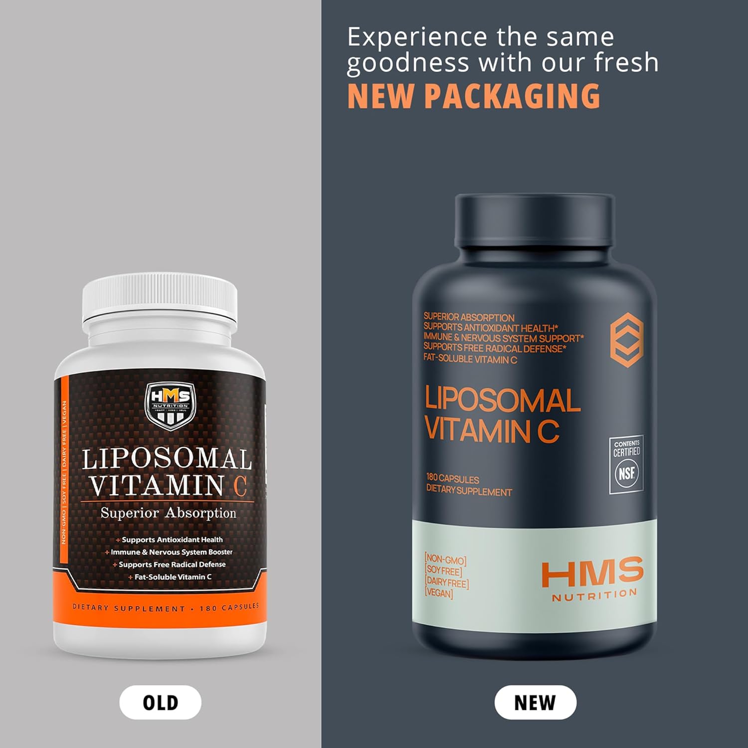 1600mg Liposomal Vitamin C, Fat Soluble VIT C, Higher Bioavailability Immune Support Supplement, Non-GMO Gluten Free NSF Certified Supplements, 180 Capsules