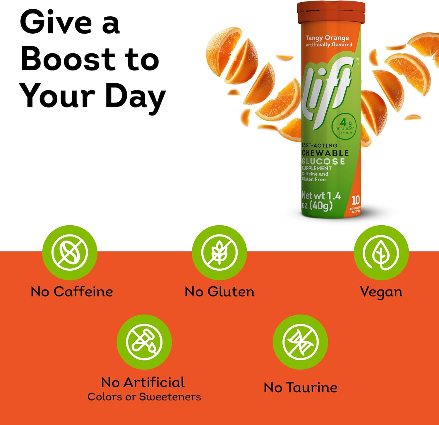Lift Glucose Fast-Acting Glucose Chewable Energy Tablets, Orange, 10 ct Tube (Pack of 12)