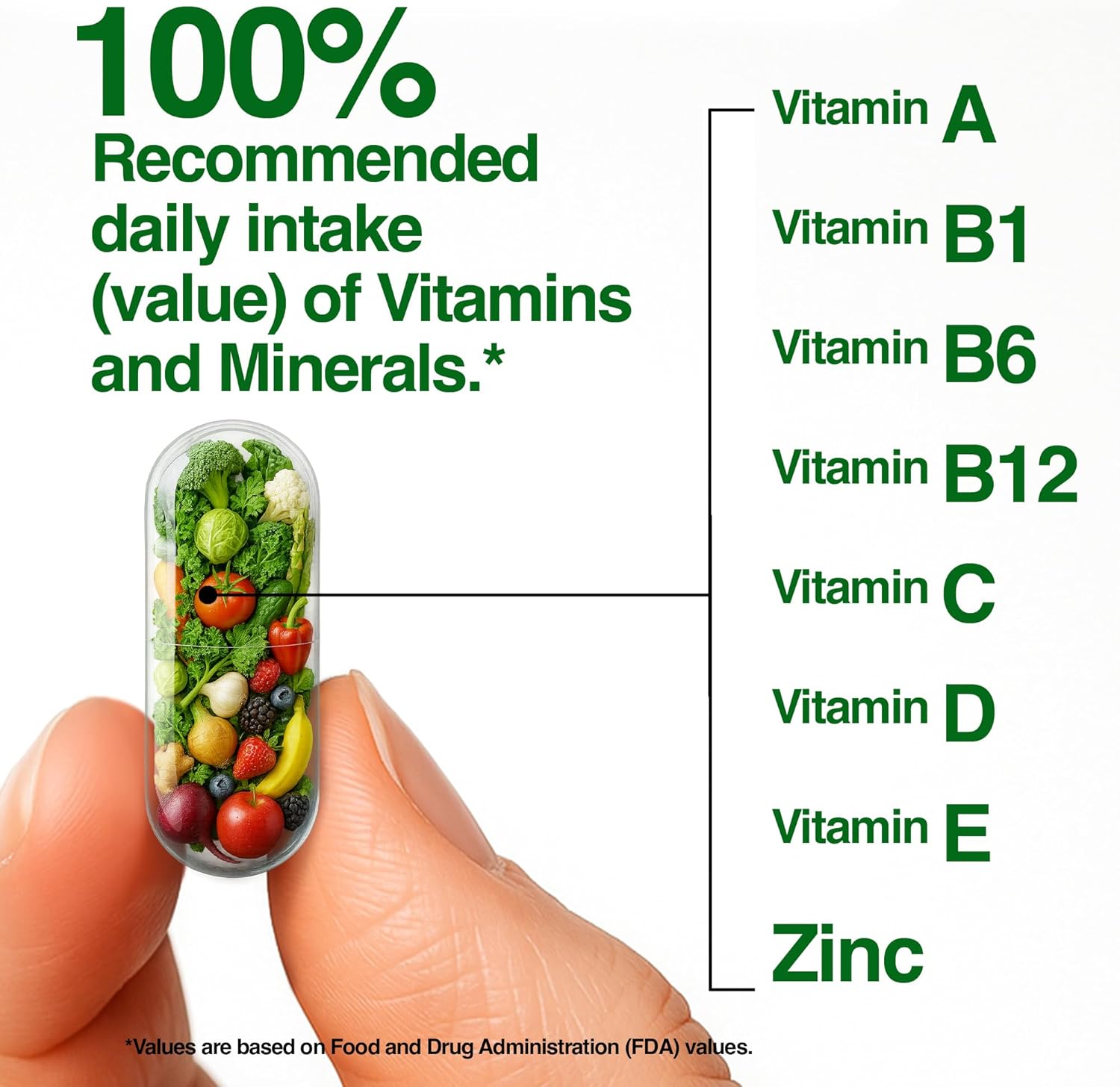 - IMMUNE SYSTEM SUPPLEMENT: Plant based immune support multivitamin capsules provide 1110% daily value of vitamin C, 1040% B12, 706% B6, Vitamin A, Vitamin D, and Zinc; capsules feature nutrients from 25 organic fruits and vegetables. All in one physician-formulated immune support supplement