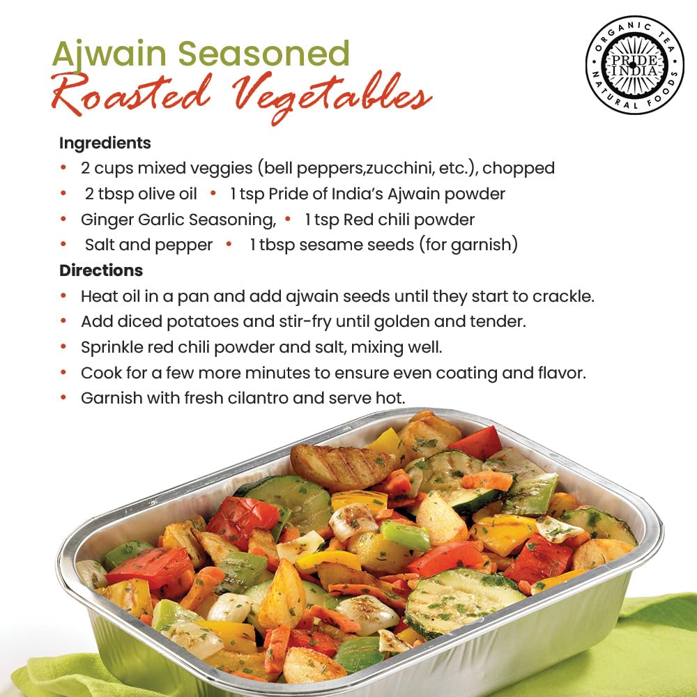 Pride of India – Ajwain Seed Powder – Gourmet Indian Spice – Made from Fresh Carom Seeds – Rich in Nutrients – Aromatic & Flavorful – Easy to Use - 8oz. Medium Dual Sifter Jar