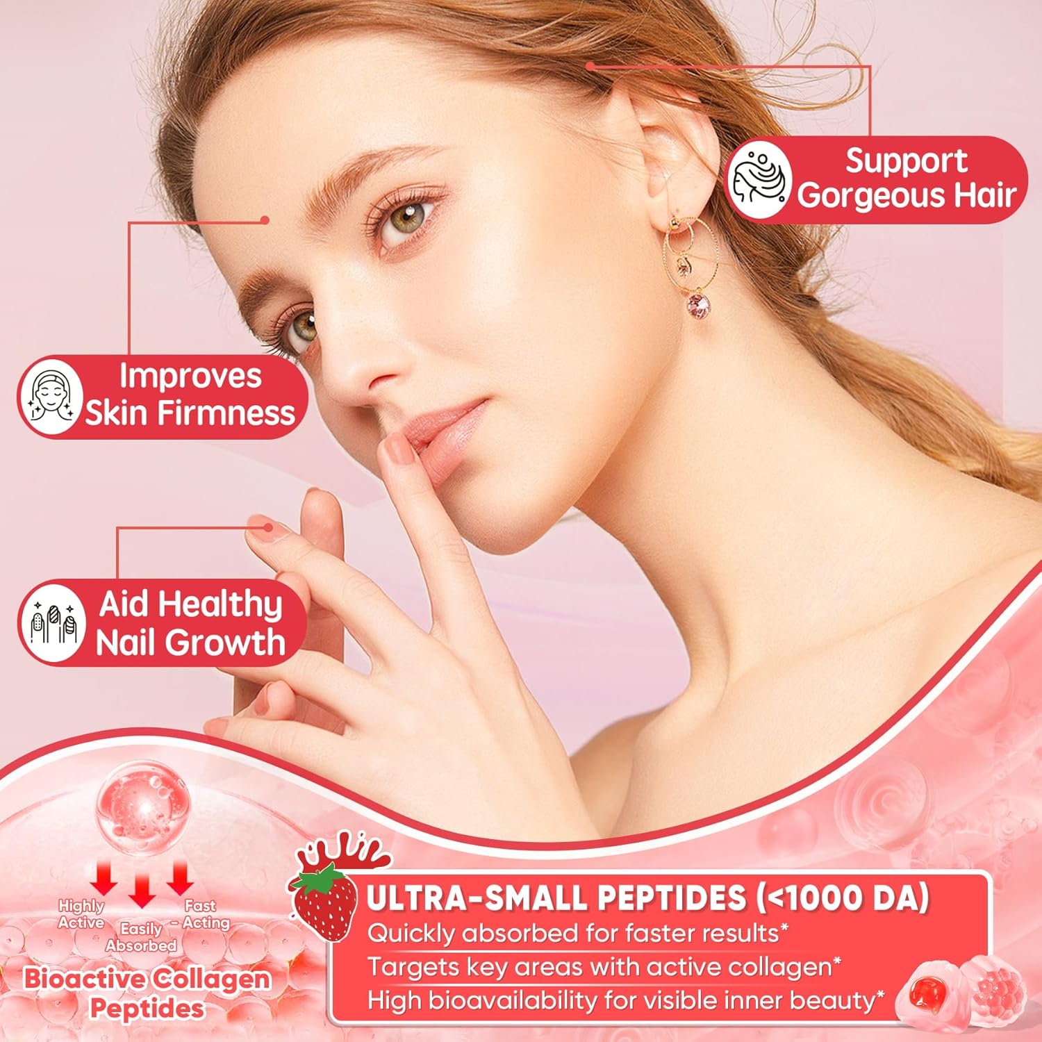 - 💗Perfect Liquid-Filled Collagen Peptide Gummy: Our advanced GummieJel technology locks highly bioavailable collagen peptides inside an inner liquid layer, ensuring maximum potency and faster absorption. The outer layer features pectin and natural strawberry flavor for a delicious, vegan experience. By blending essential vitamins and collagen peptides in one gummy for high absorption and optimal benefits. Enjoy a burst of flavor with each bite while supporting your skin, and immune.
