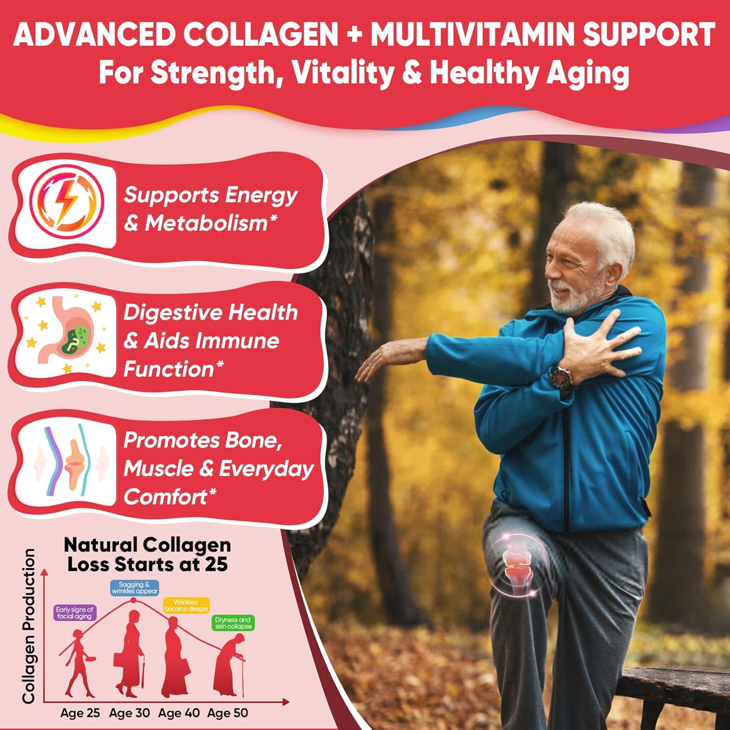 - 💪 Collagen-Powered Bone, Fḙxḭ-bḭ-ḷḭṯy & Immune Support – Collagen is a key structural protein that supports bone dḙn-sḭty, and ḉḁṛ-ṯḭḷḁḡḙ strength, making it essential for active lifestyles and aging well. Combined with Vitamin D2 and Zinc, these gummies help maintain strong bones and a resilient immune system, while B-complex vitamins support energy metabolism and overall vitality. Sweetened with Stevia and Monk Fruit, they offer a delicious, sugar-free option for daily wellness.