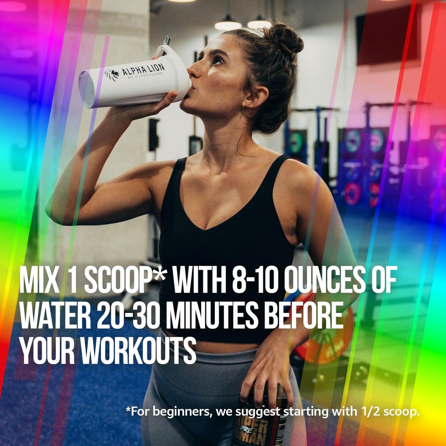 ALPHA LION Superhuman Pre Workout Powder, Beta Alanine, L-Taurine & Tri-Source Caffeine for Sustained Energy & Focus, Nitric Oxide & Citrulline for Pump (21 Servings, Unicorn Juice)