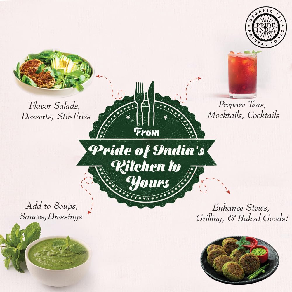 Pride of India – Mint Leaf Whole – Cut & Sifted for Convenience of Use – Good for Culinary Uses – Ideal for Tea/Beverages – Easy to Use – 1 oz. Small Dual Sifter Bottle