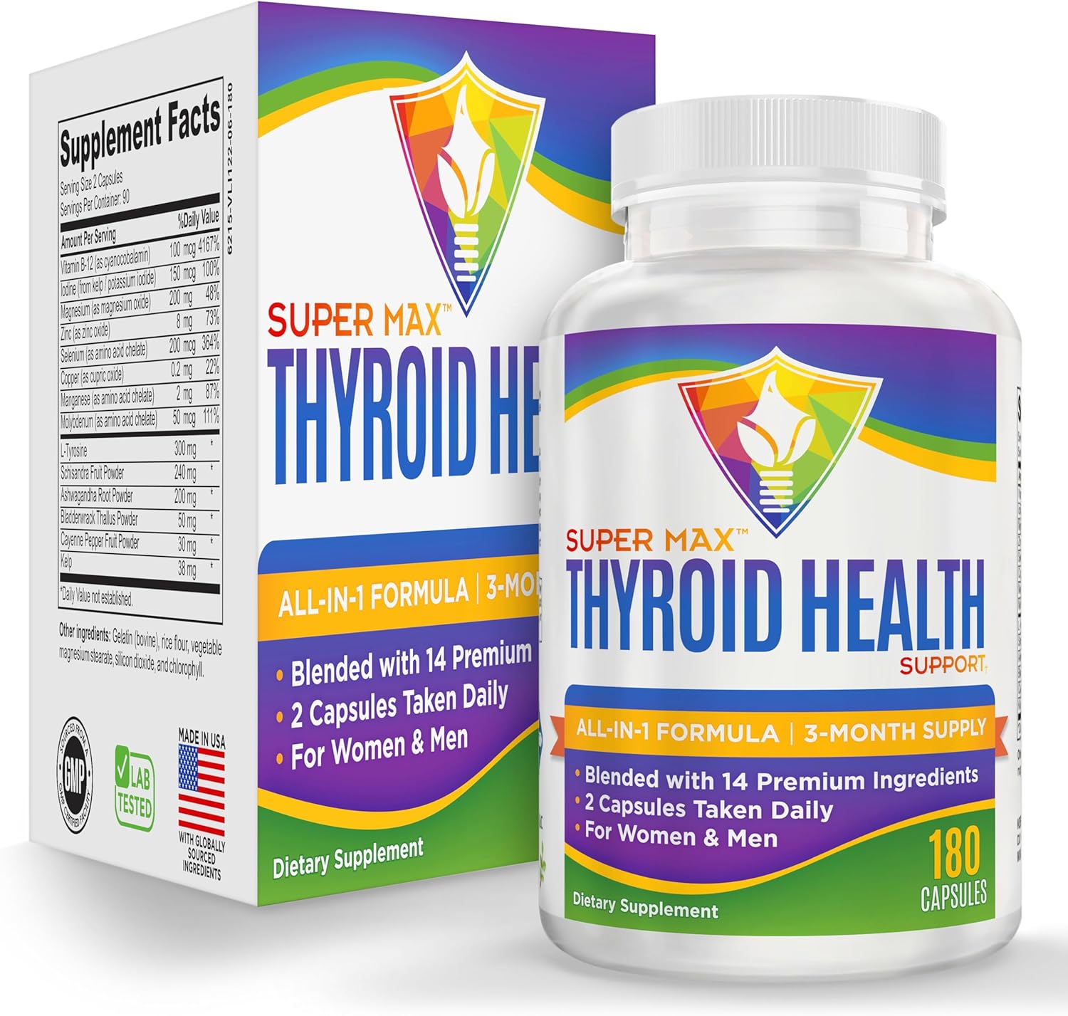 - SUPER-MAX (ALL-IN-1) THYROID SUPPORT FOR WOMEN & MEN (3-MONTH SUPPLY) – A powerful blend of natural herbs, vitamins, minerals, and amino acids to provide comprehensive support for healthy thyroid function & hormone production/regulation - Made in the USA in certified GMP labs - Natural Thyroid Supplement | Thyroid Support | Thyroid Health | Thyroid Energy