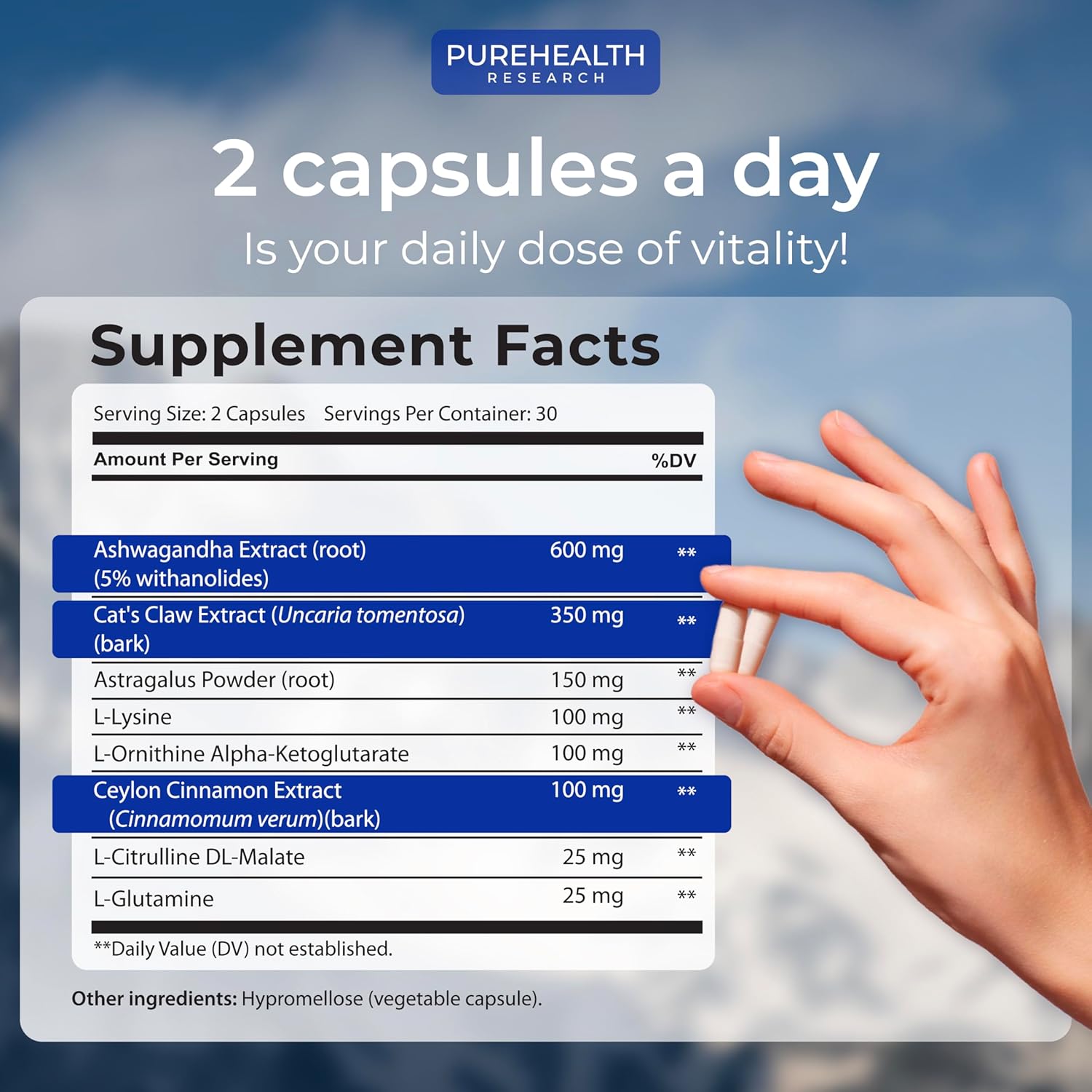 PUREHEALTH RESEARCH Youth Switch - Anti Aging Supplement with Ashwagandha Extract 600 mg KSM-66 - Longevity Activator - Telomere Supplements - Disrupt & Reverse Aging, 1 Bottle - 60 Capsules