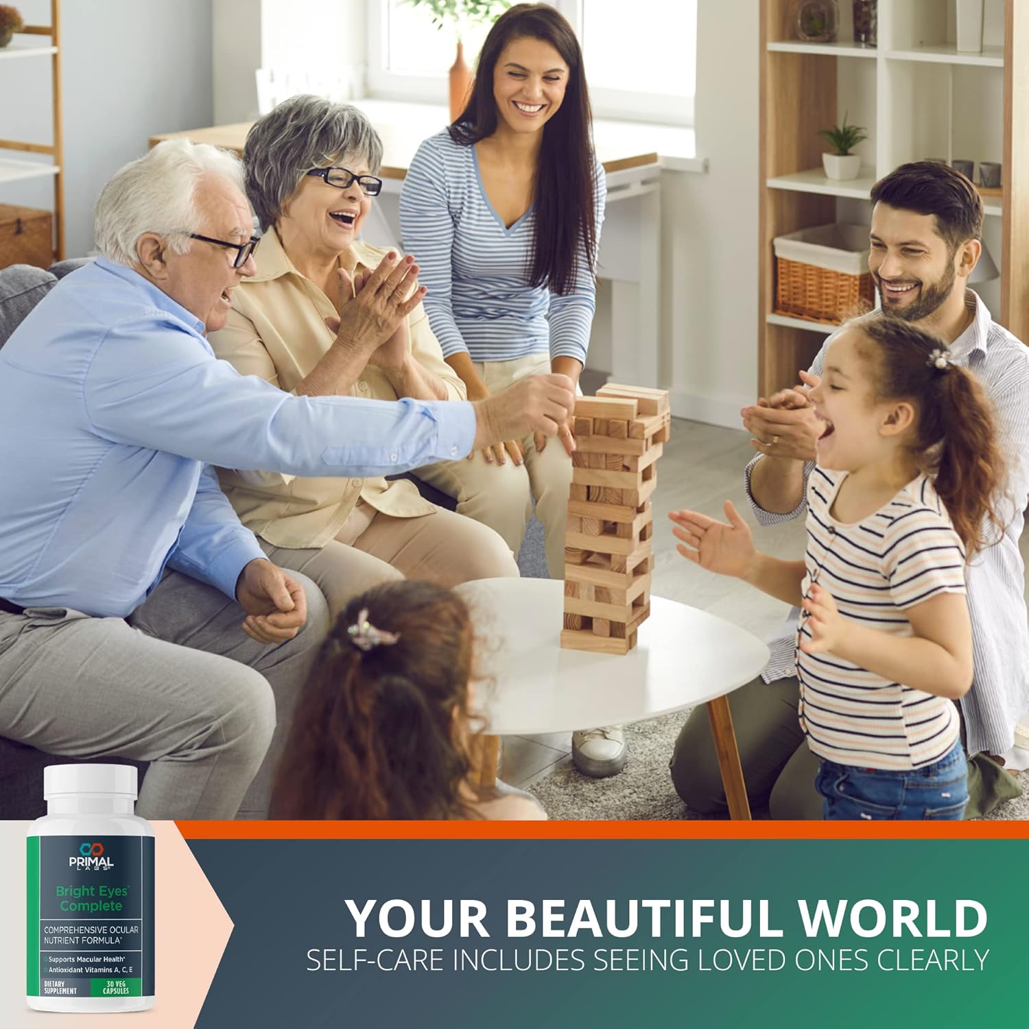 Primal Health Bright Eyes Complete - Ocular & Macular Health - Clear Vision - Lutein & Zeaxanthin Formula - Healthy Eyesight - Relieves Eye Strain from Blue Light - Dietary Supplement - 30 Capsules