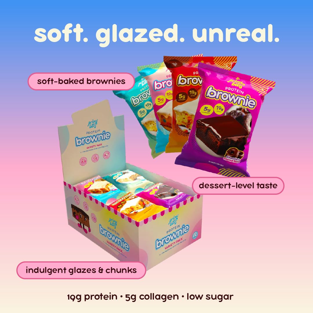 - UNBELIEVABLE FLAVOR ROUNDUP: Prime Bites Protein Brownies come in wonderful-tasting flavors including; 2x Chocolate Glazed Donut, 2x Glazed Cinnamon Roll, 2x Birthday Cake, 1x Banana Nut, 1x Peanut Butter Candy Crunch, 1x Chocolate Cookie Monster, 1x Cookie Dough Bites, 1x Blueberry Cobbler, 1x Cookies & Cream Blondie