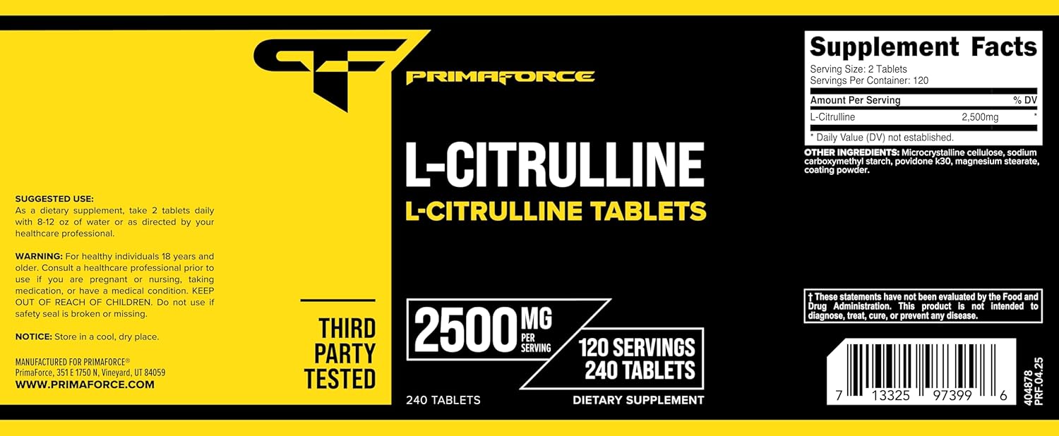 Primaforce L-Citrulline 2500mg, 240 Tablets, 120 Servings