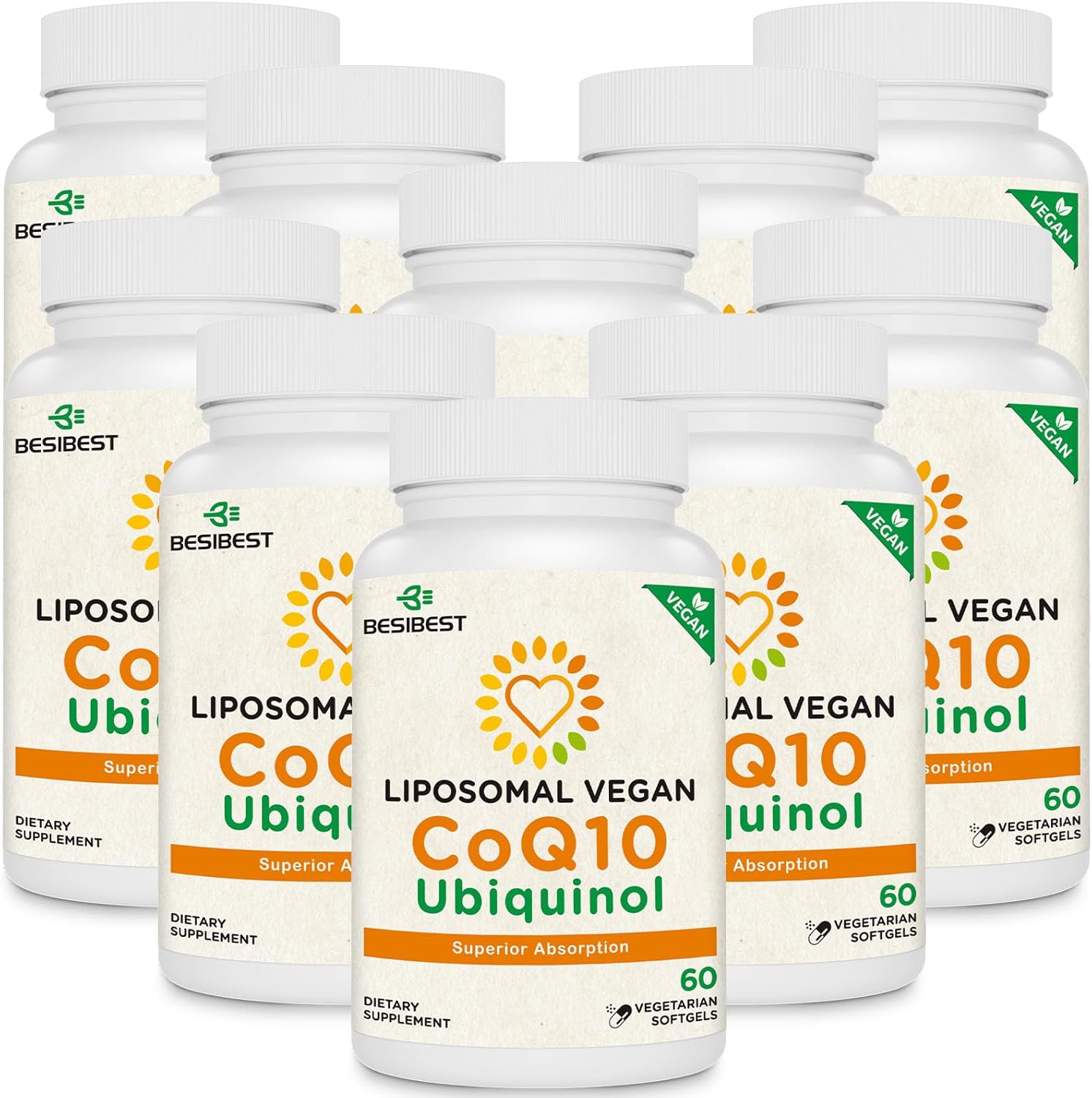 - VEGAN INGREDIENTS: 60 vegetarian softgels of max strength Liposomal CoQ10 Supplements are 100% natural. Designed specifically for vegans, vegetarians & plant-based diets. Suitable for everyone. These vegan coq10 supplements deliver effective doses of nutrition that help fill gaps in your coq10 ubiquinol supplement diet