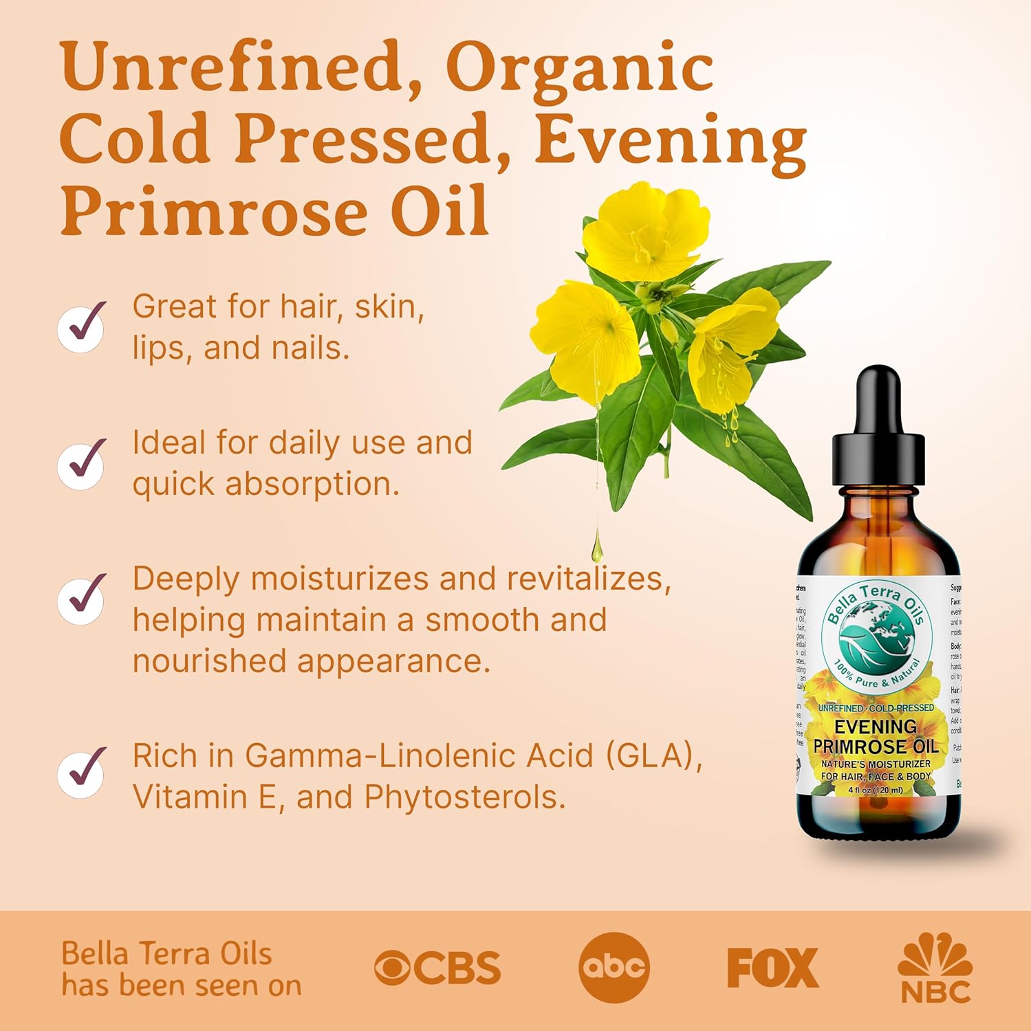 Bella Terra Oils - Organic Evening Primrose Oil 16 oz - Embrace the Enchanting Primrose Nutritional Profile, High in GLA & Fatty Acids, Elevate Your Beauty Routine