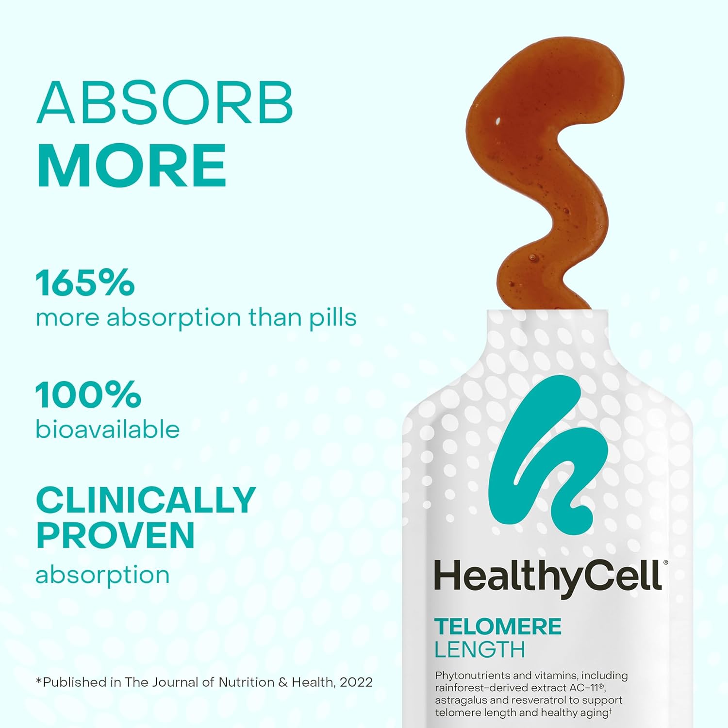 - Ultra-Absorbable MicroGel to Support Healthy Aging: Developed by top nutrition scientists, our flavorful MicroGel is clincally proven to deliver 165% more absorption than tablets. Powered by AC-11, coenzyme B vitamins, zinc, resveratrol, and L-citrulline to support DNA repair, nitric oxide, and healthy aging at the cellular level.