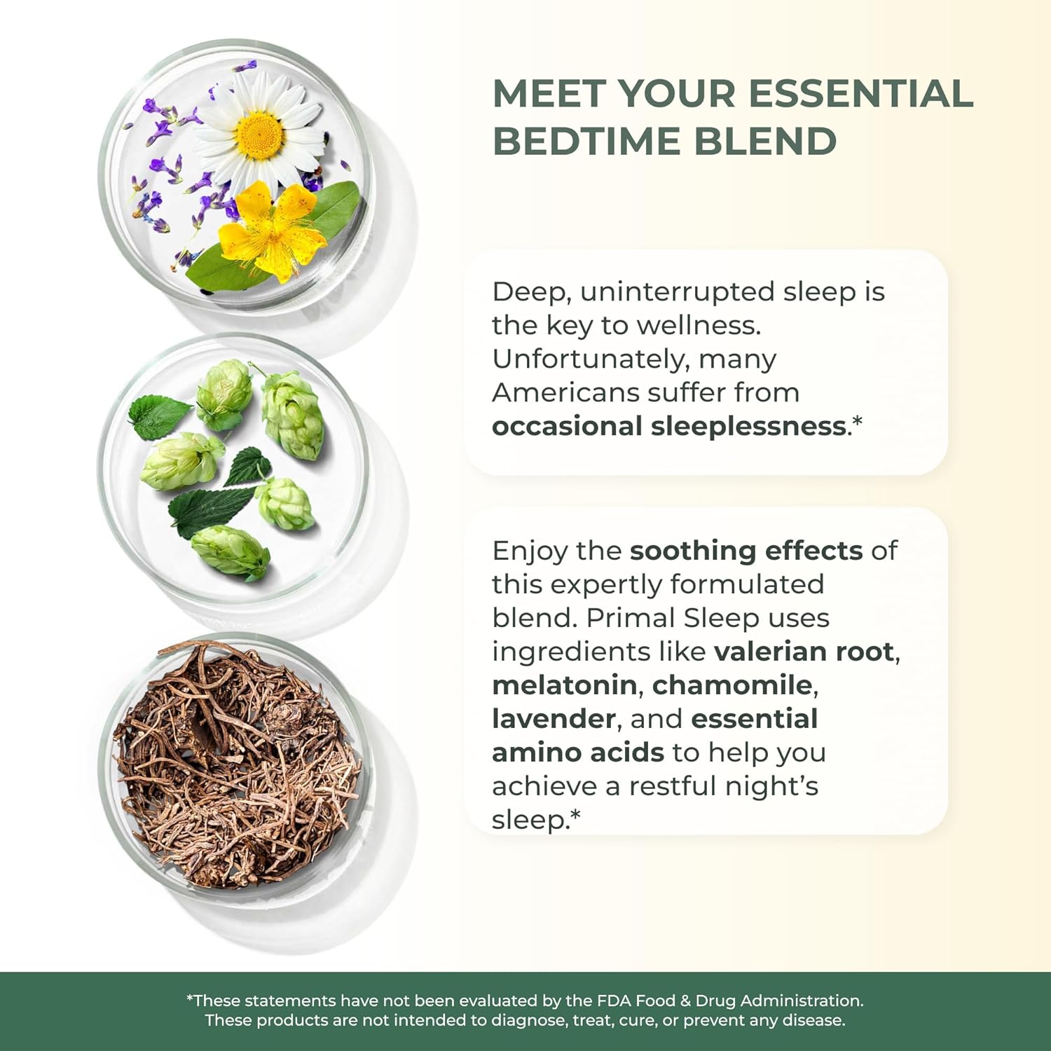 Primal Harvest 2 Pack, Primal Sleep, 120 Capsules with Valerian Root, L-Tryptophan, GABA, Chamomile, and Melatonin 3mg