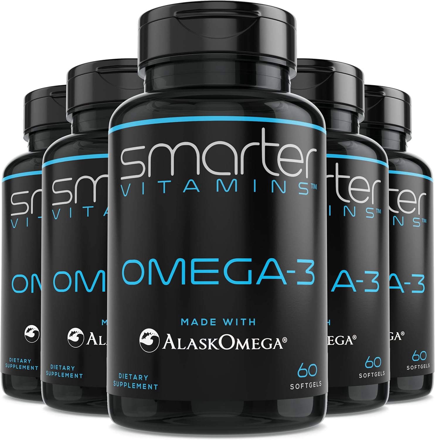 (5 Pack) Smarter Omega 3 Fish Oil, Berry Flavor, Burpless, Tasteless, 2000mg, Potent Triple Strength DHA EPA Brain Omega-3, Made with AlaskOmega®