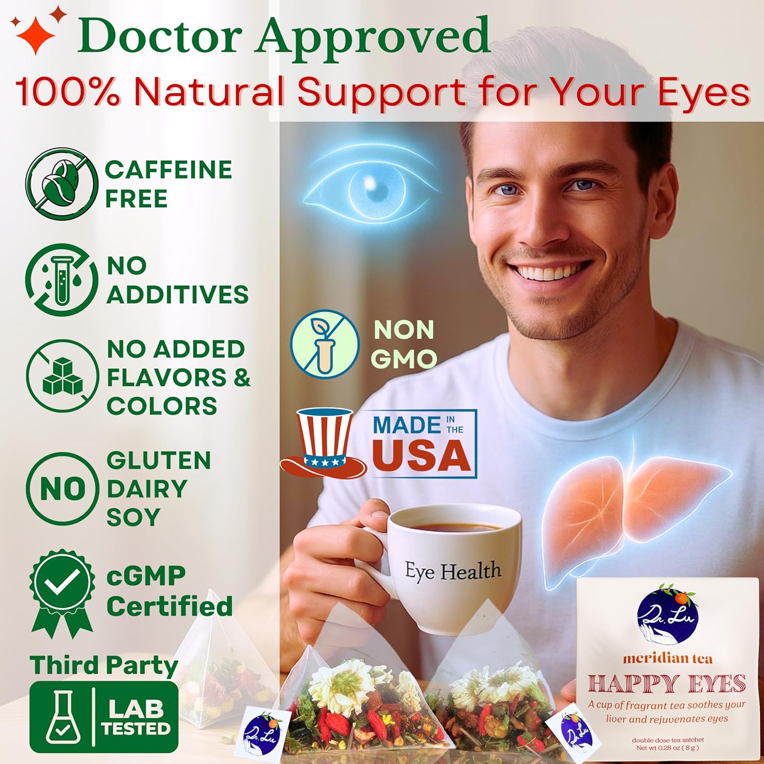 2 Pack of Dr. Lu’s Happy Eyes Tea | 100% Natural Eyebright Tea for Liver Cleanse | Liver Detox tea for Eye Health Made in US