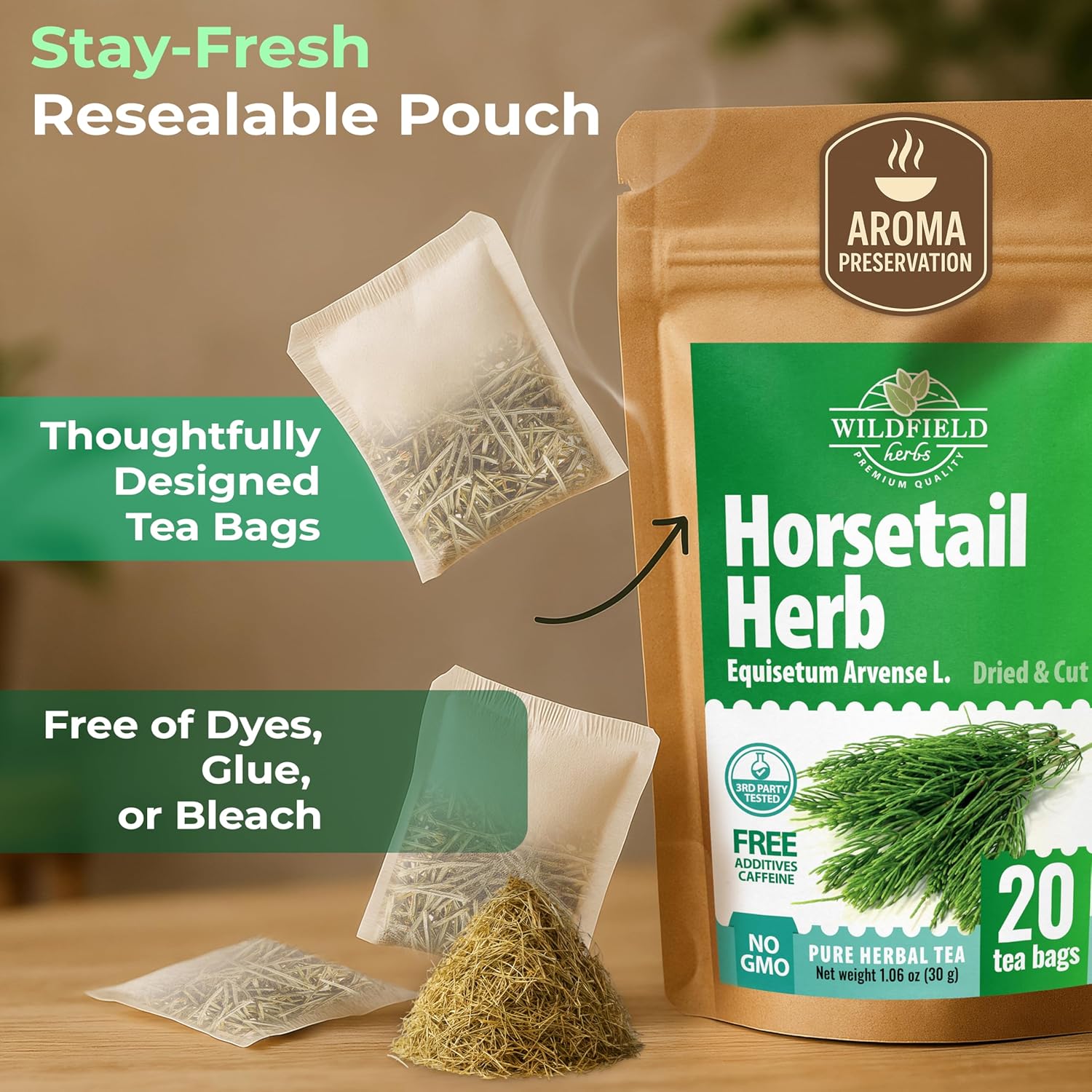 20 Bags Dried Horsetail Herb Tea Shavegrass Cola De Caballo Hierba (Equisetum Arvense) - 20 Count 1.5 g Tea Bags Horsetail Leaf Leaves Herb