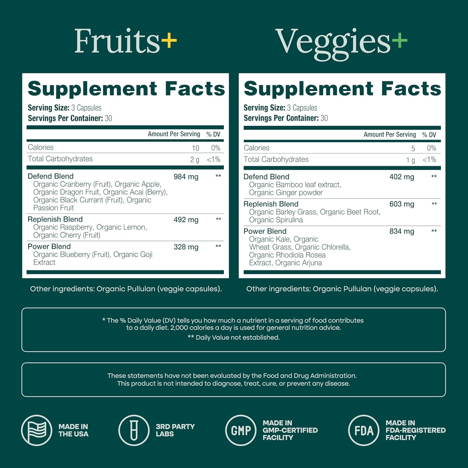 - [30 Day Supply] We are so confident in our Fruits and Veggies Capsules that we will give you beyond the 30 days supply to try us out, and enjoy, or you're money back. Whether Amazon accepts your returns or not, we do! Contact us and we will provide no-hassle refunds.