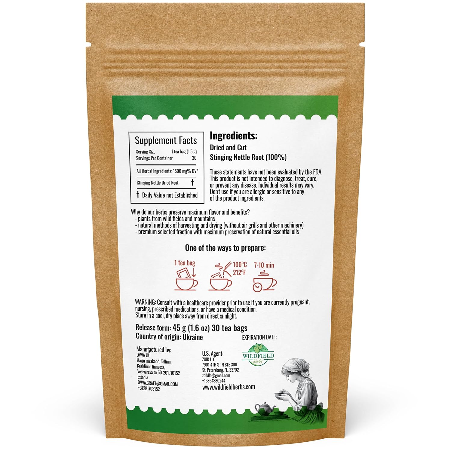 30 Bags Nettle Root Dried Stinging Nettle Root Herbal Tea - 24 Count 2g Bags Herb Tea Raíz De Ortiga