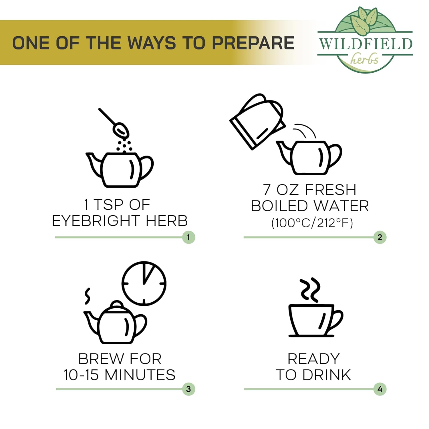 - Weight of Eyebright Herbal Tea: 4 oz (113 g). These Eyebright Eyebright have been grown, carefully harvested, specially dried and specially packaged to ensure that they reach the customer in the freshest and most fragrant condition.