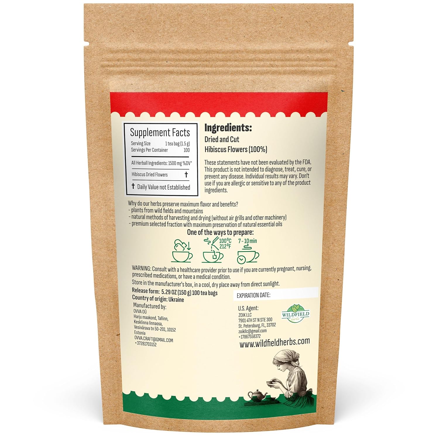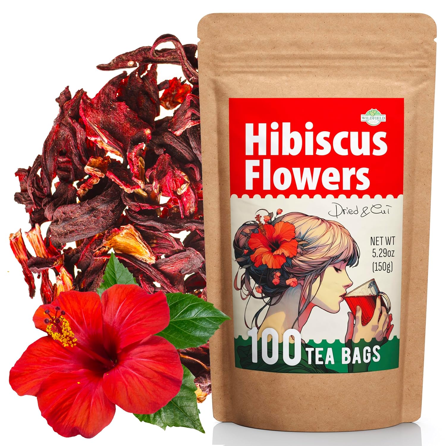 100 Bags Dried Hibiscus Flower Tea Herbal Flor De Jamaica (Hibiscus) - 100 Count 1.5g Tea Bags Dry Dried Hibiscus Flowers Herb Hibisko