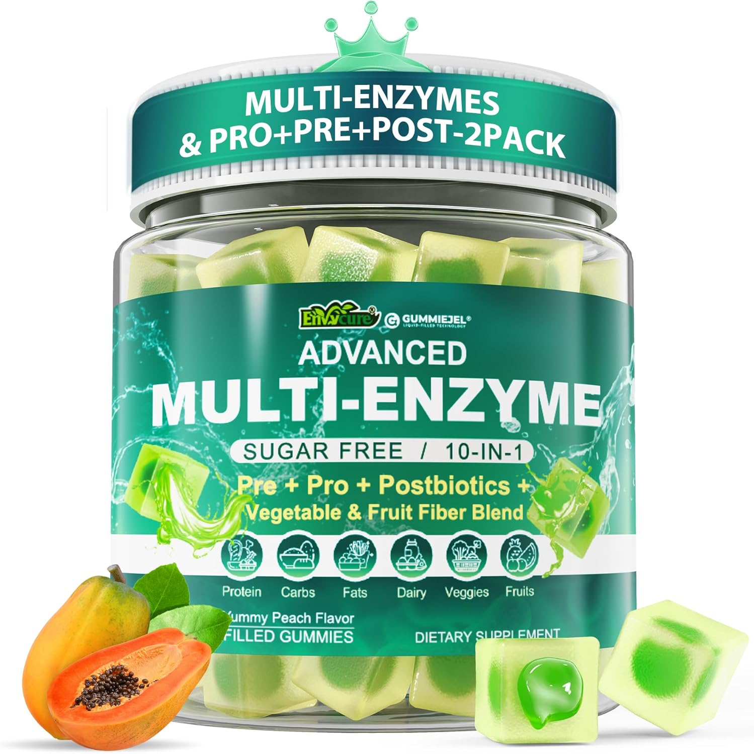 - ❤️Maximum Bioavailability: Our digestive enzyme gummies use GummieJel technology to encapsulate probiotics, postbiotics, and digestive enzymes at the core, preserving potency and enhancing absorption.The dual-layer design features a soft pectin shell with natural peach flavor, while the center remains rich in active cultures and enzymes.This ensures superior bioavailability and digestive support,protecting delicate probiotics and enzymes to promote gut health and nutrient absorption effectively.