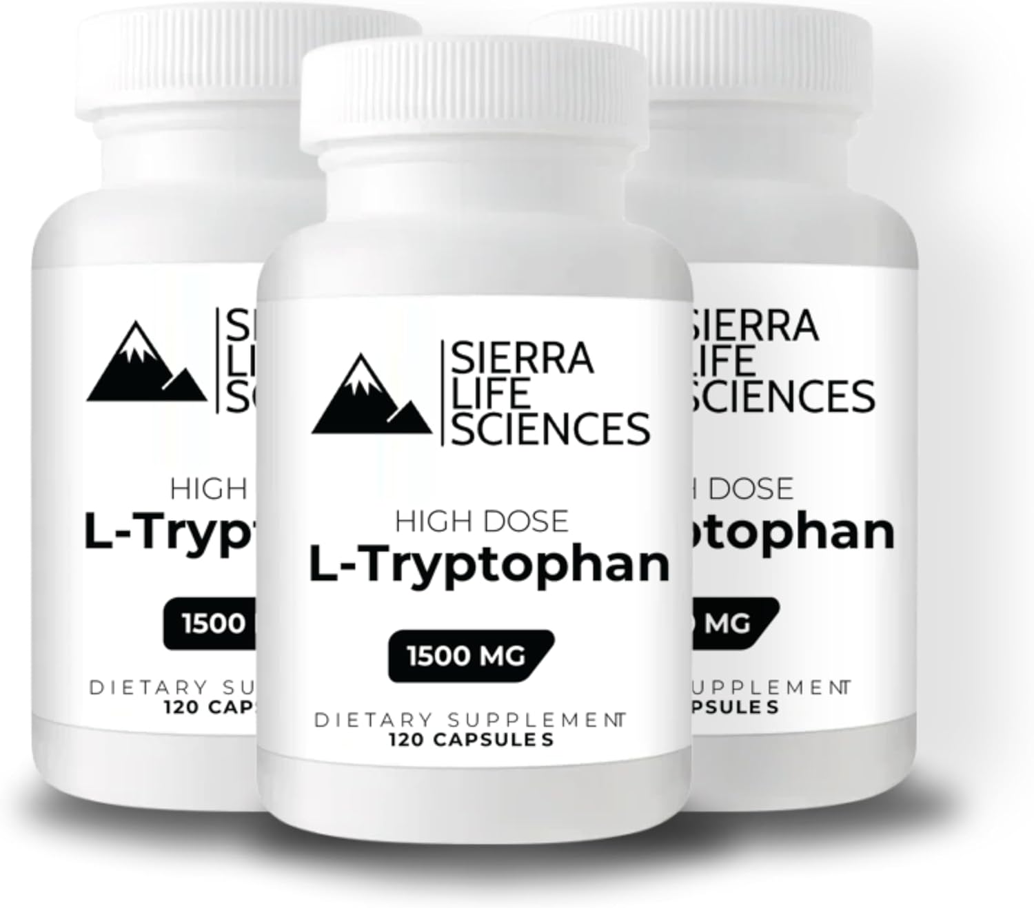 1500mg High Dose L-Tryptophan Max in Easy-to-Swallow Capsules | Gluten-Free, Non-GMO | 40 Servings (3-Pack)