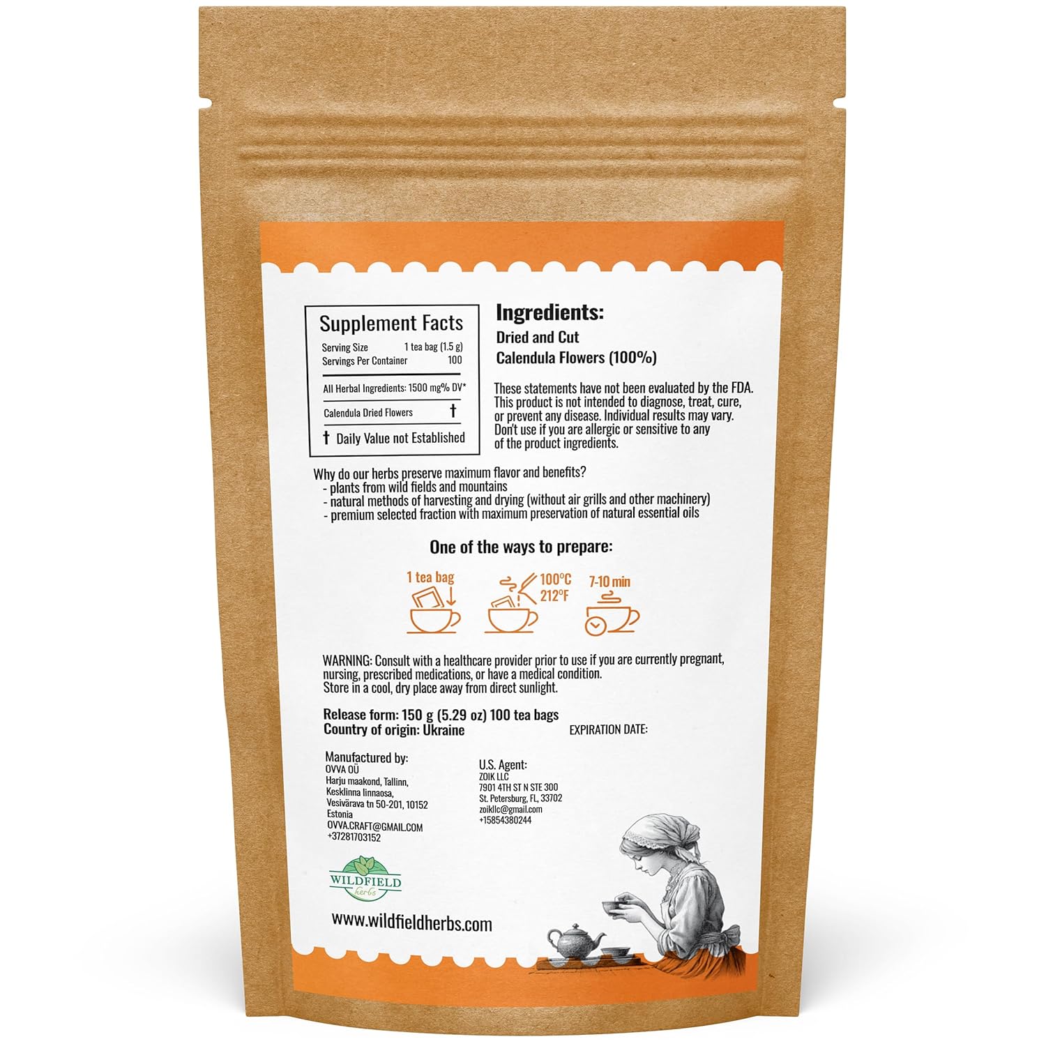 100 Bags Calendula Tea Dried Calendula Flowers Herb Tea (Caléndula Officinalis) - 100 Count 1.5 g Bags Kalendula