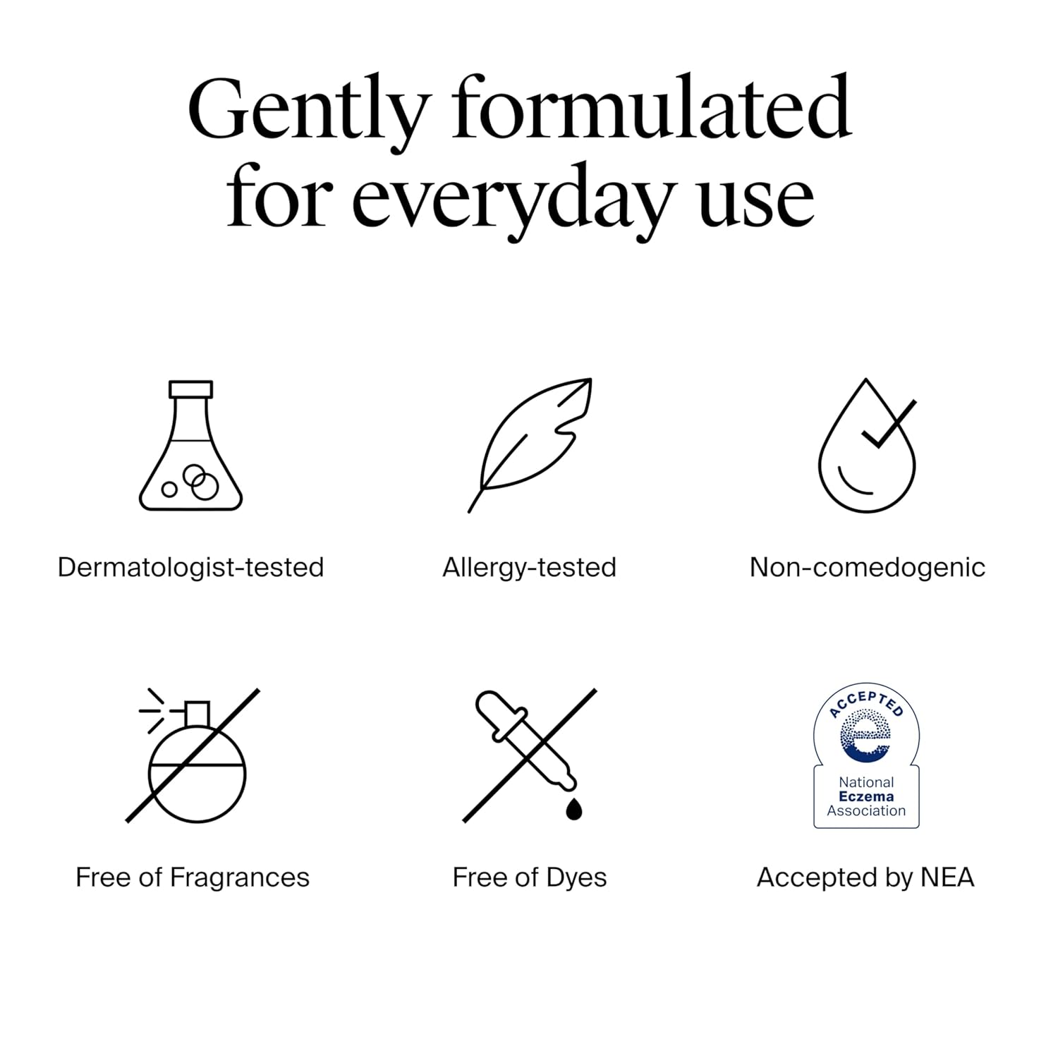 - Facial cleanser: Trial size hydrating gel facial cleanser transforms into a silky foaming lather to remove makeup, dirt, oil, and impurities; fragrance free, non-comedogenic, and suitable for sensitive or acne-prone skin.