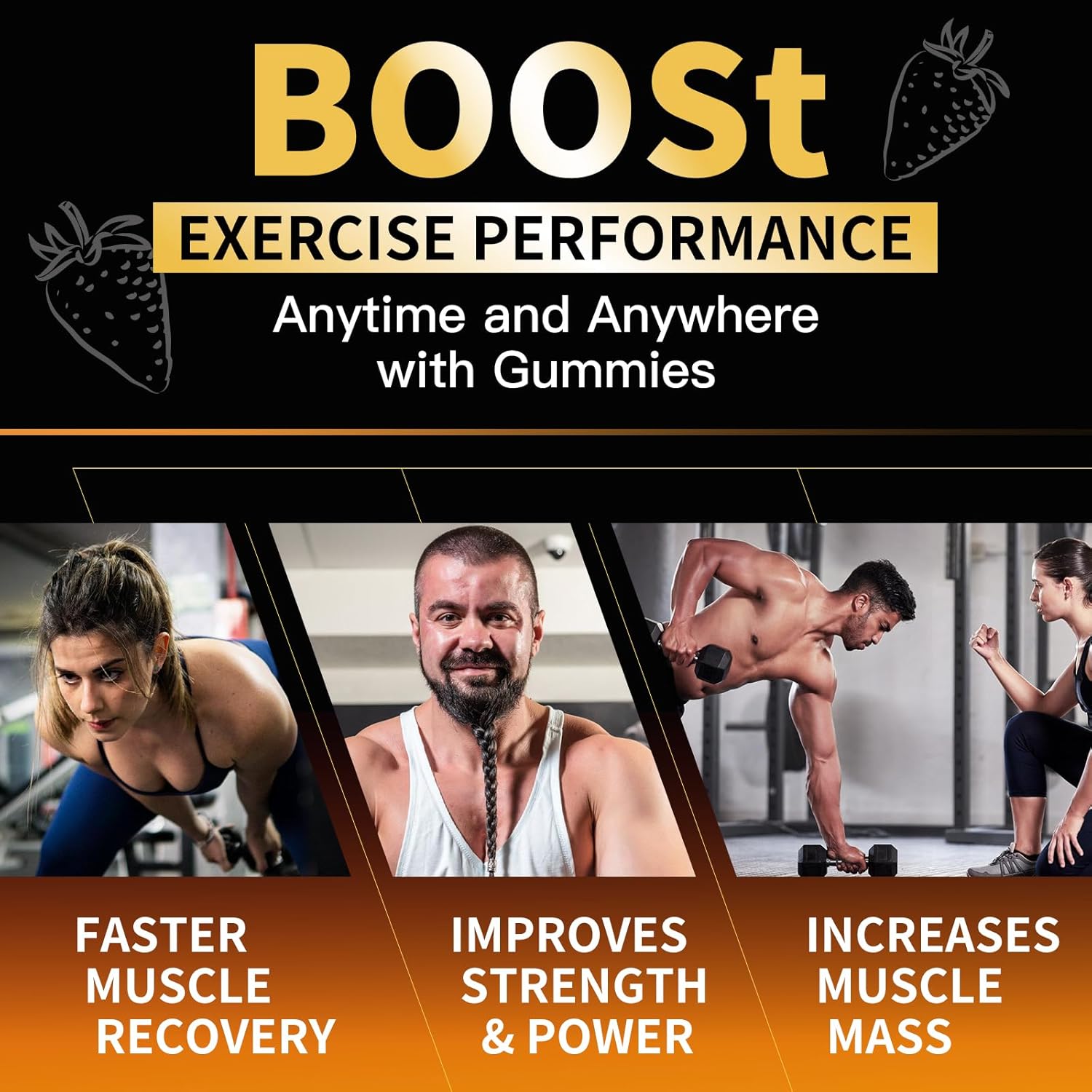 - [ Key Benefits]: Our Creatine monohydrate gummies are an easy way to consume, 4 gummies per serving, you can take it at any time, any place. It improved muscle strength, muscle recovery, improve endurance and energy boost. Suitable for a variety of users, and enjoyable taste.