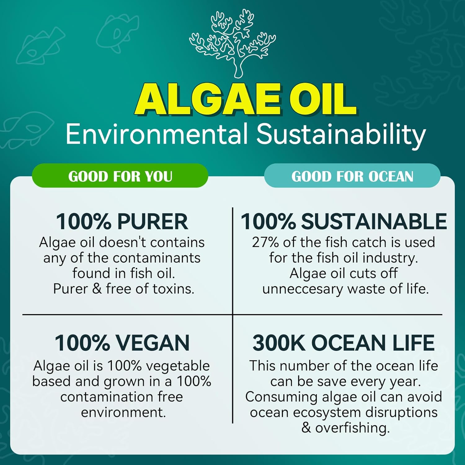 - Straight From The Source: Marine algae is the original source of Omega-3 fatty acids DHA & EPA. All DHA EPA found in fish originate from algae. Not only does it contain higher concentrations of DHA than fish oil, algae oil is also 100% sustainable, potent and clean source of omega-3. With Neviss, you get 1000mg of high-quality, sustainable Omega-3s without the risk of ocean-borne pollutants and toxins. Derived from a trusted, natural plant source so there's no fishy aftertaste or fish burps.