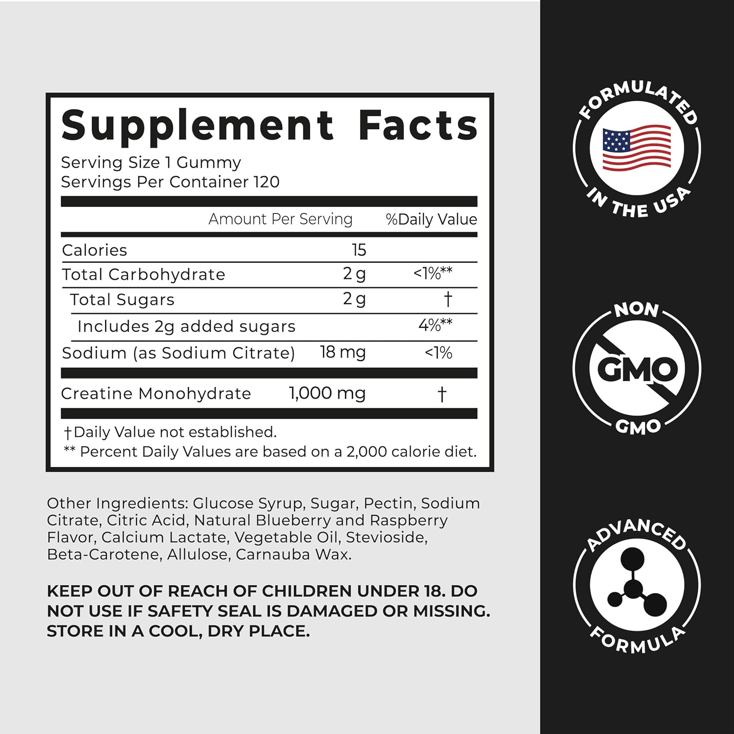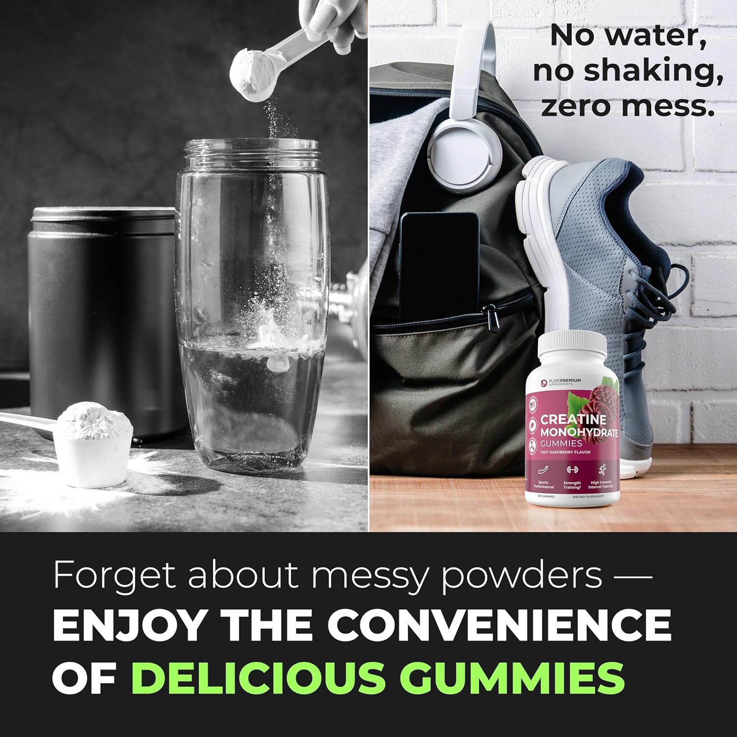 - DELICIOUS CONVENIENCE: Enjoy all the benefits of creatine powder in a tasty, easy-to-use form. No more mixing, shaking, and chalky aftertaste. Reach your fitness goals with raspberry-flavored creatine gummies, made without artificial colors or sweeteners.*