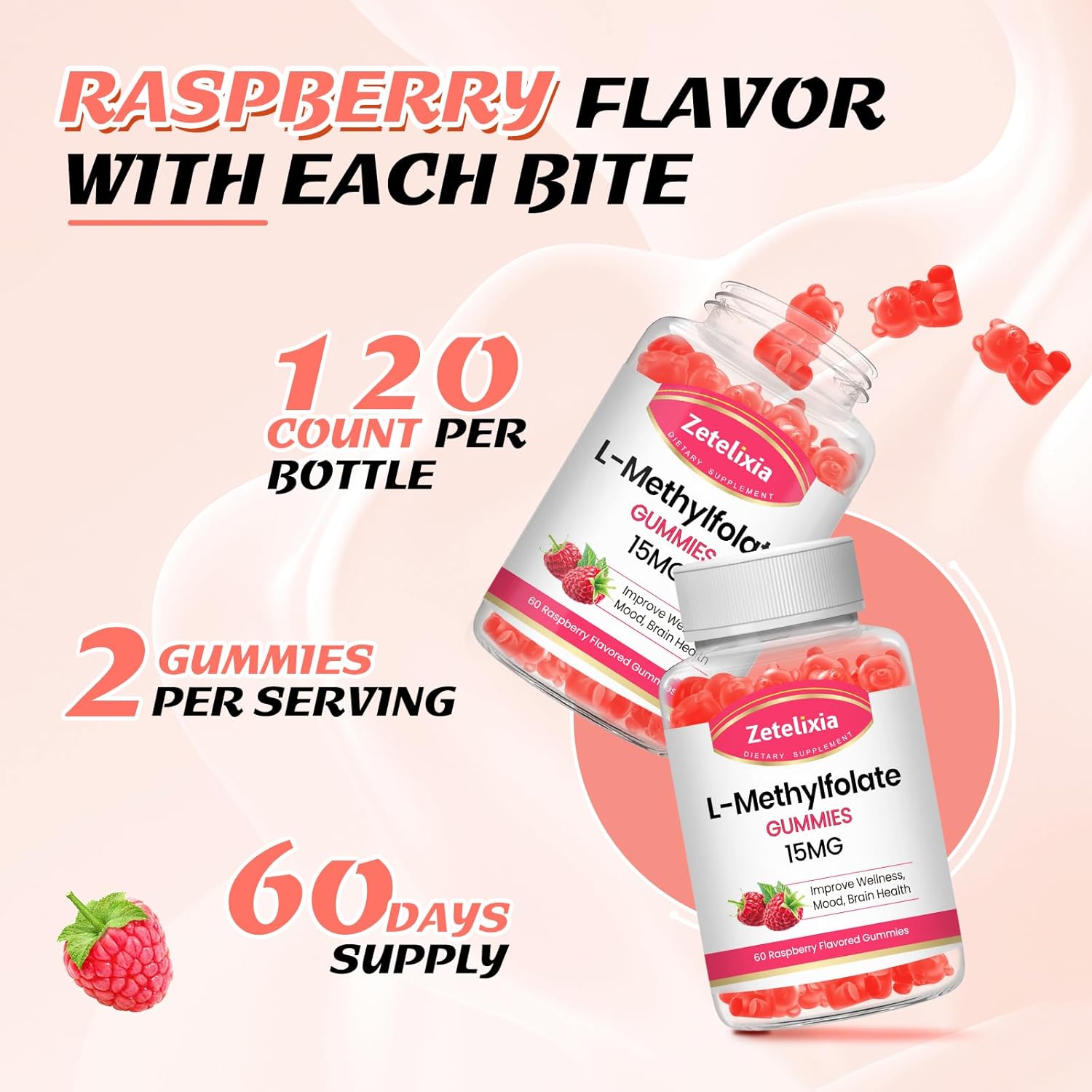 - Soft & Chewable: Each set contains 2 bottles of Zetelixia raspberry-flavored folate and B12 supplement gummies. With 120 gummies, it offers a 60-day supply, featuring a refreshing sweet-tangy taste