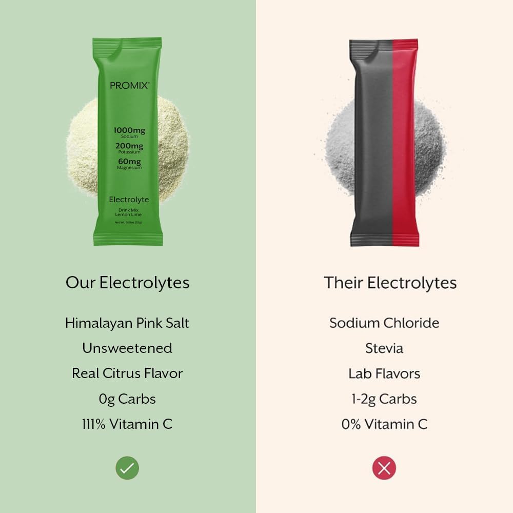 ProMix Nutrition Electrolytes Powder Packets - Sugar Free, Zero Calorie, Stevia Free, Fasting Friendly, Natural Himalayan Pink Salt - Lemon Lime - 30 Servings (Pack of 30)