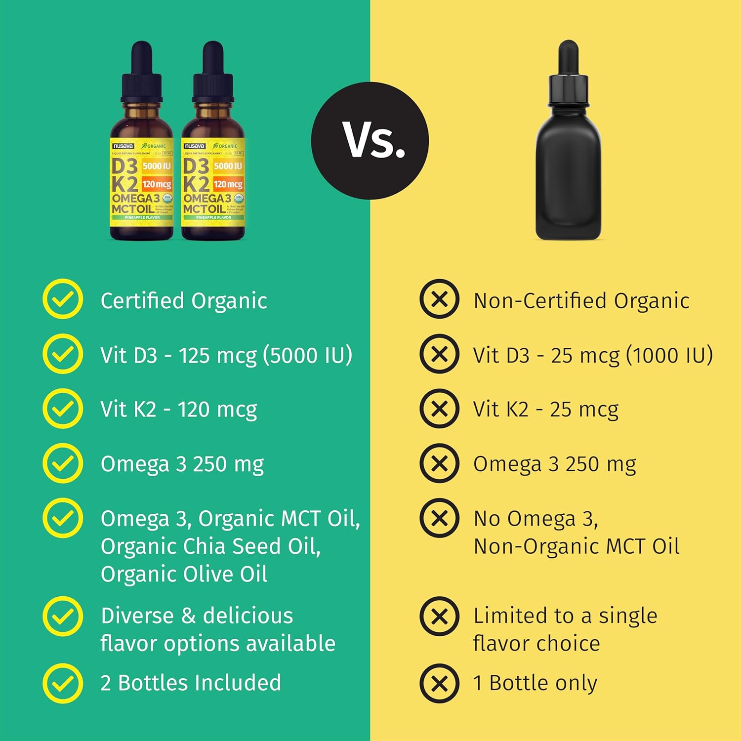 - Carefully Curated Organic Vitamin D Liquid - Our Vitamin D3 K2 liquid drops contain no fillers, are non-GMO, and are proudly USA-made with global ingredients.