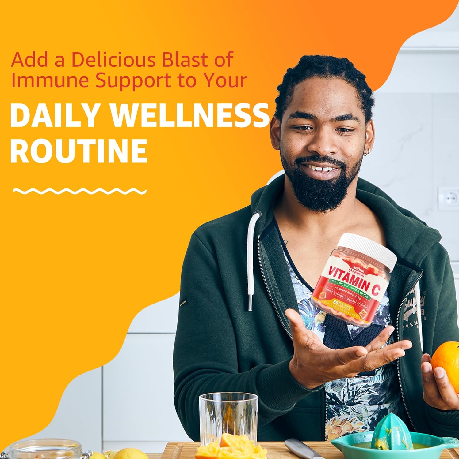 - Convenient Family-Friendly Nutrition: No more chalky pills! Take 2 yummy, natural orange-flavored gummies every day to satisfy your daily vitamin c needs. Perfect for busy lifestyles, Nextdia Vitamin C gummies are suitable for ages 4 and up, offering a simple, tasty way for the whole family to enjoy daily vitamin C on the go, boosting immunity without the mess.