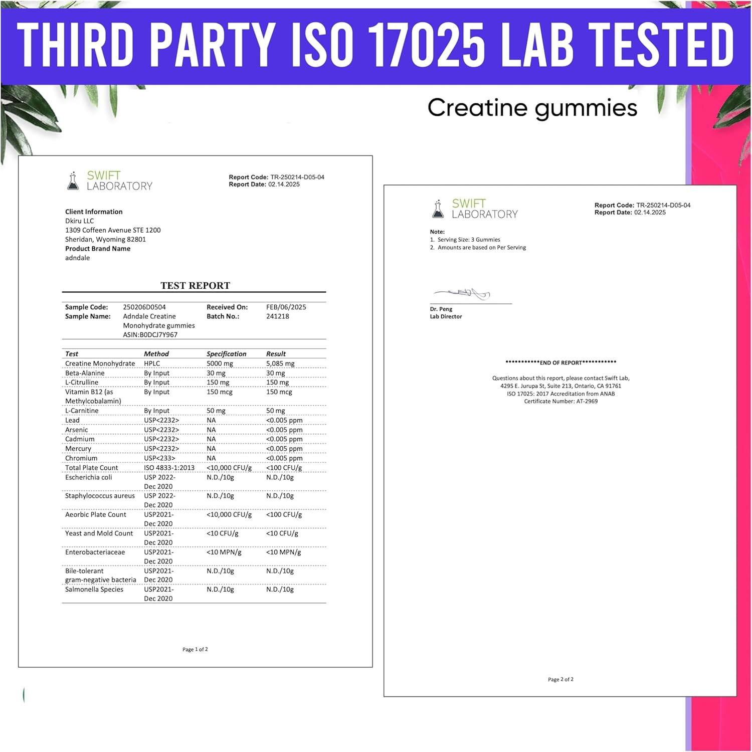 Adndale Creatine Monohydrate Gummies for Men & Women, 5000mg per Serving Creatine Supplement with Beta-Alanine, L-Citrulline & B12 - Supports Strength and Energy - 75 Vegan Gummies, Sugar-Free