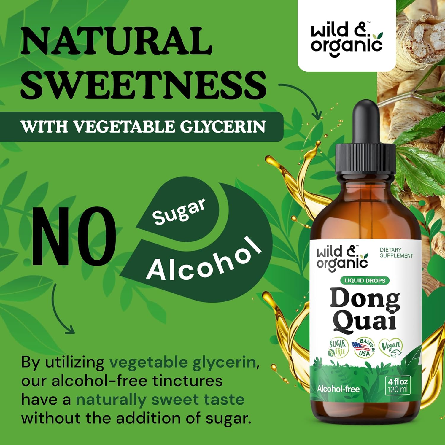 - Alcohol-Free: Wild & Organic Dong Quai supplement for women is vegetable glycerin-based, providing an alcohol-free tincture that is easy on digestion.